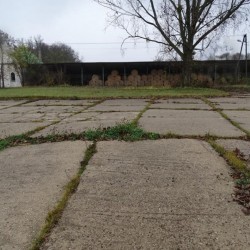 Około 40 % powierzchni nieruchomości jest utwardzone betonem wylewanym (ciągi komunikacyjne, place manewrowe). Ogrodzenie stanowi płot z płyt żelbetowych, mur z cegły ceramicznej oraz siatka.