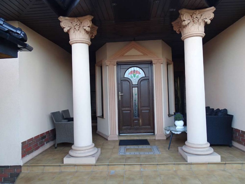 Zamontowane są okna PCV dwu kolorowe, które posiadają rolety zewnętrzne aluminiowe, a na podłogach znajdują się parkiety oraz kafle ceramiczne. Ściany i sufity są gipsowane. Kuchnia jest umeblowana meblami na wymiar i jest wyposażona w sprzęt agd.