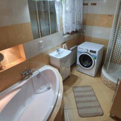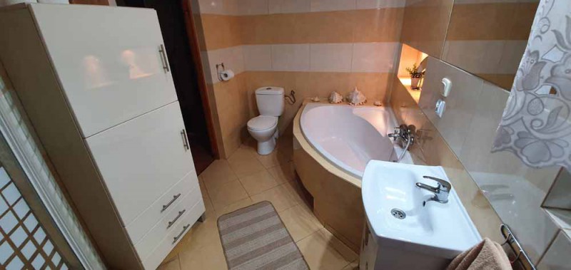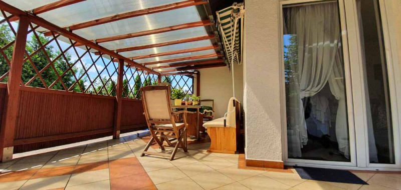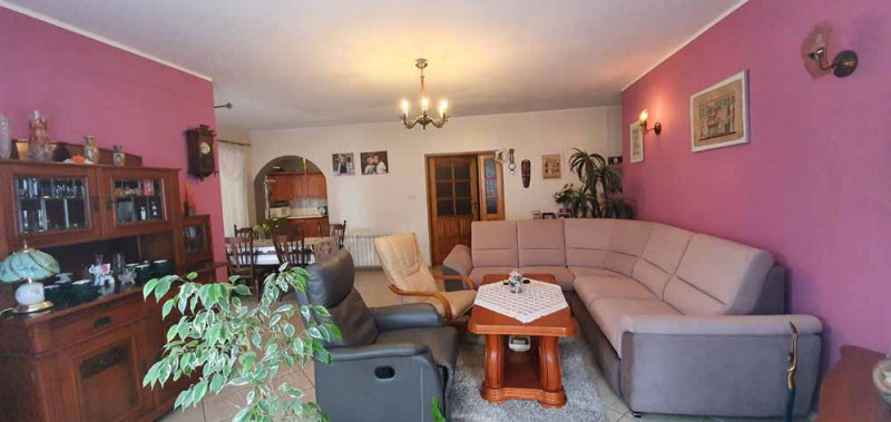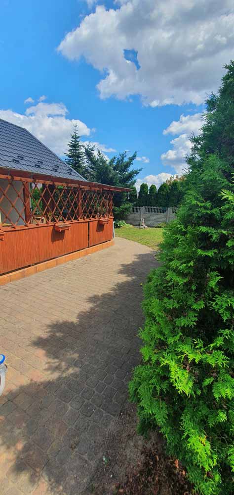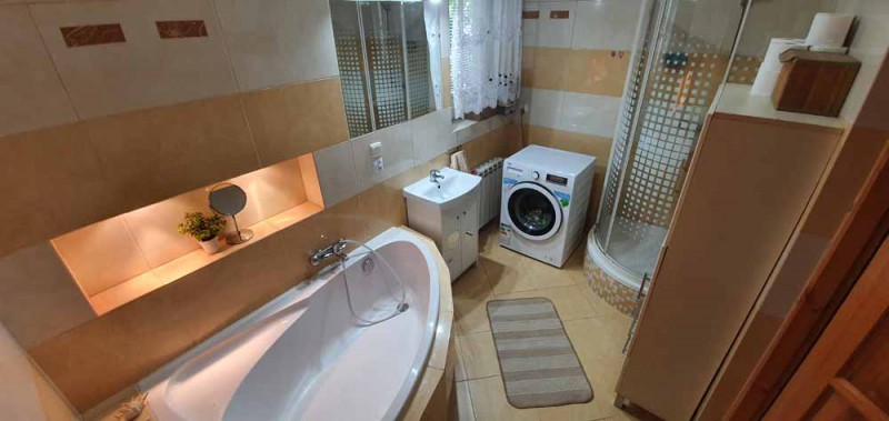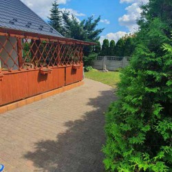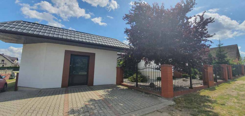 Budynek mieszkalny posiada powierzchnię użytkową 147 m2, wybudowany został w 2006 roku, z suporeksu, jego mur zewnętrzny jest ocieplony styropianem i otynkowany. Jego dach jest na konstrukcji drewnianej, jest deskowany a jego pokrycie główne stanowi blacho dachówka. Kominy wybudowane zostały z cegły klinkierowej. Strop jest ocieplony. Wewnątrz do dyspozycji mamy salon o powierzchni 32 m2 z wyjściem na taras i miejscem na kominek, kuchnię ze spiżarnią, 4 sypialnie, łazienkę, wc, holl, garderobę oraz kotłownię. Zamontowane są okna PCV, a na podłogach znajdują się panele oraz kafle ceramiczne. Kuchnia jest umeblowana meblami na wymiar i wyposażona w niezbędny sprzęt agd. Łazienka wykończona jest w płytkach ceramicznych, zamontowano w niej kabinę prysznicową i wannę. Centralne ogrzewanie gazowe jest wspólne z lokalem użytkowym, kaloryfery są aluminiowe.