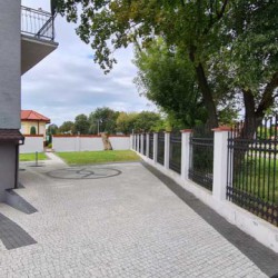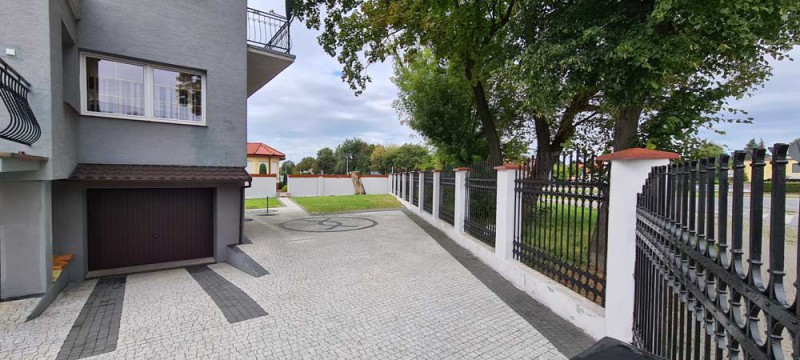 Działka jest ogrodzona i zagospodarowana, jej front ogrodzony jest płotem kutym, a w pozostałej części płotem betonowym. Wjazd i parking jest utwardzony ozdobną kostką. Nieruchomość przyłączona jest do sieci energetycznej, wodnej, kanalizacyjnej, gazowej oraz lokalnego operatora telewizji kablowej i internetu.
