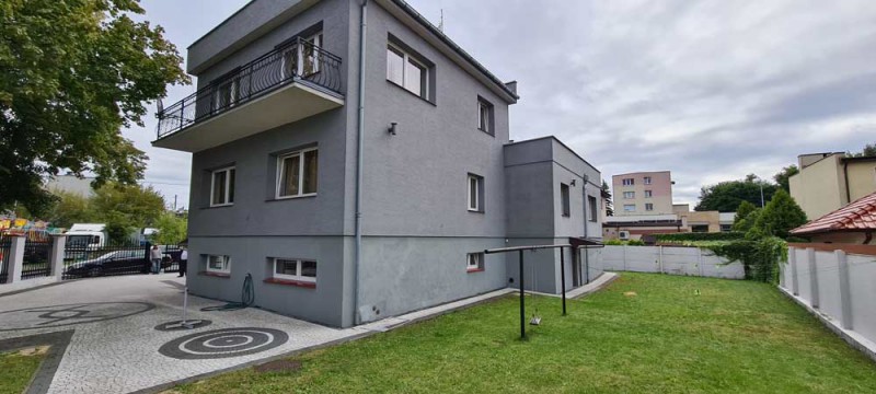 Przedstawiamy Państwu ofertę sprzedaży nieruchomości, która atrakcyjnie położona jest w centrum Ostrowa Wielkopolskiego, przy ulicy Królowej Jadwigi. Lokalizacja ta jest idealna na siedzibę firmy, działalność gospodarczą, biurową, szkołę. Nieruchomość o powierzchni działki 736 m2 zabudowana jest wolnostojącym, piętrowym budynkiem mieszkalnym, którego powierzchnia wynosi 276 m2. Dom ten wybudowany został w latach 80-tych, z cegły, jego mur zewnętrzny jest ocieplony styropianem o grubości 12 centymetrów i pokryty tynkiem. Budynek posiada dwa odrębne wejścia i dwa garaże w bryle budynku.