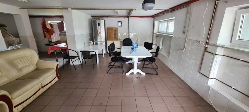 Na parterze znajduje się pokój dzienny kuchnia i łazienka, piętro obejmuje holl oraz trzy sypialnie. W skład pomieszczeń znajdujących się w piwnicy wchodzą dwa pomieszczenia gospodarcze, kotłownia i dwa garaże.