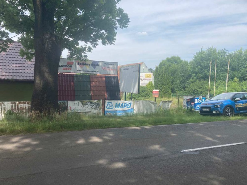 Teren ten jest ogrodzony siatką i jest w 70 % utwardzony płytami betonowymi co ułatwia transport samochodami ciężarowymi.