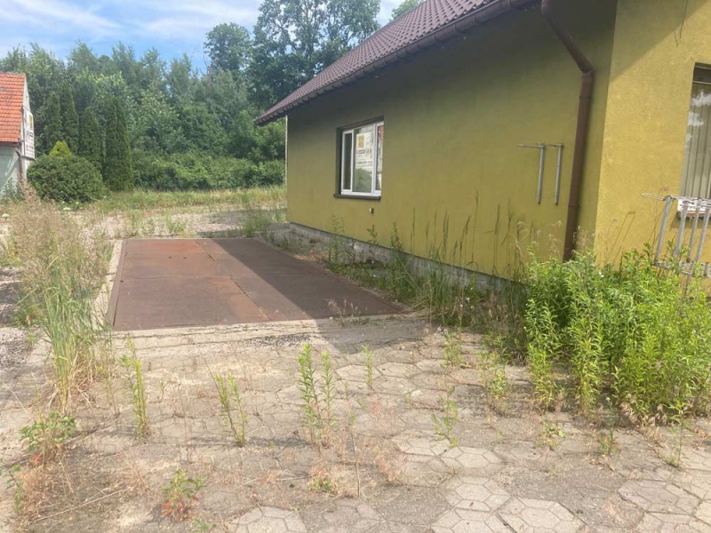 1. Wolnostojący murowany budynek użytkowy o powierzchni 59 m2, który posiada wagę towarową u udźwigu 20 ton.