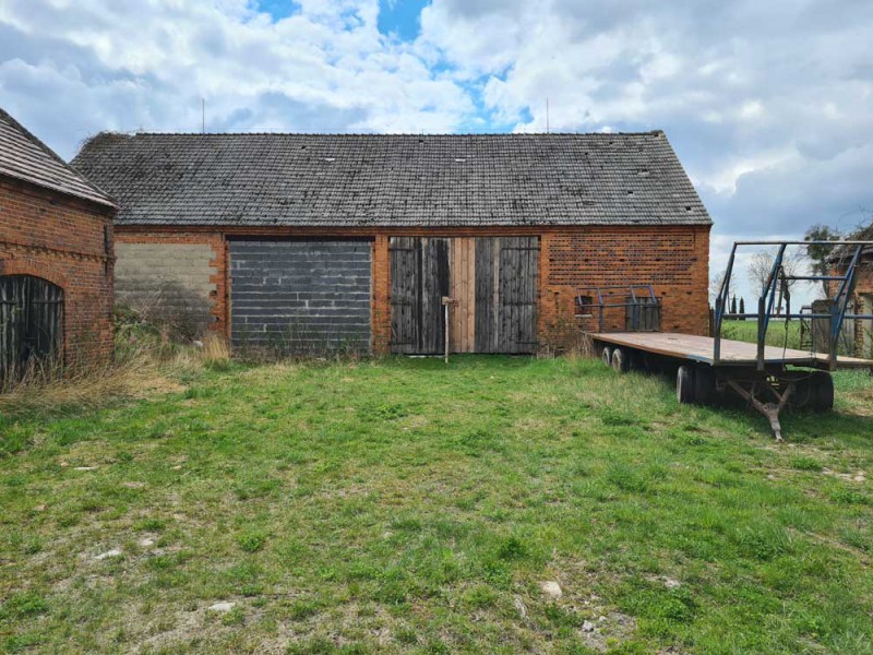 Oferujemy Państwu na sprzedaż zabudowania gospodarcze wraz z budynkiem mieszkalnym, które położone są w miejscowości Zalesie Wielkie w Gminie Kobylin,w Powiecie Krotoszyńskim. Nieruchomość ta stanowiła niegdyś gospodarstwo rolne i posiada działkę o powierzchni 6200 m2. Zabudowana jest ona budynkami wybudowanymi z cegły - domem mieszkalnym z 1948 roku, o powierzchni 50 m2 składającym się z dwóch pokoi oraz kuchni. Zabudowania gospodarcze - posiadają powierzchnię łączną około 400 m2. Jest to obora o powierzchni około 180 m2 która wybudowana została w 1905 roku oraz stodoła o powierzchni około 220 m2 z 1959 roku. Dachy tych budynków pokryte zostały dachówką.