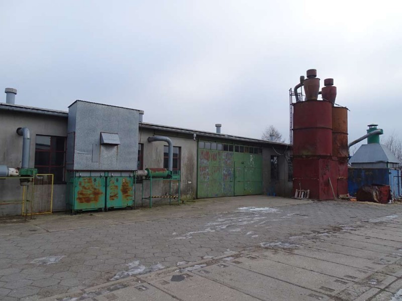 - kompleks budynków produkcyjno magazynowych (budynek biurowy 25,20 m2, budynek produkcyjno - magazynowy 249,72 m2, pakowalnia 94,23 m2, budynek magazynowy 67,24 m2, bejcownia 71,21 m2, kotłownia 96,31 m2) Powierzchnia łączna - 603 m2