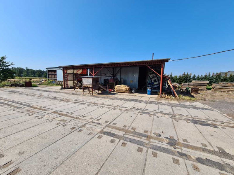Teren jest ogrodzony i zagospodarowany, wjazd na posesję, parking, plac manewrowy utwardzone zostały betonową kostką. Obiekt jest wyposażony w urządzenia i maszyny służące do obróbki drewna, ale może służyć do innych celów produkcyjnych lub magazynowych.