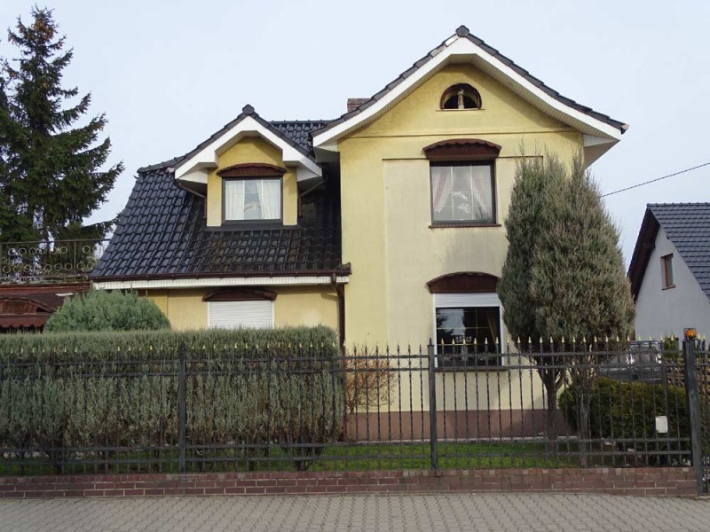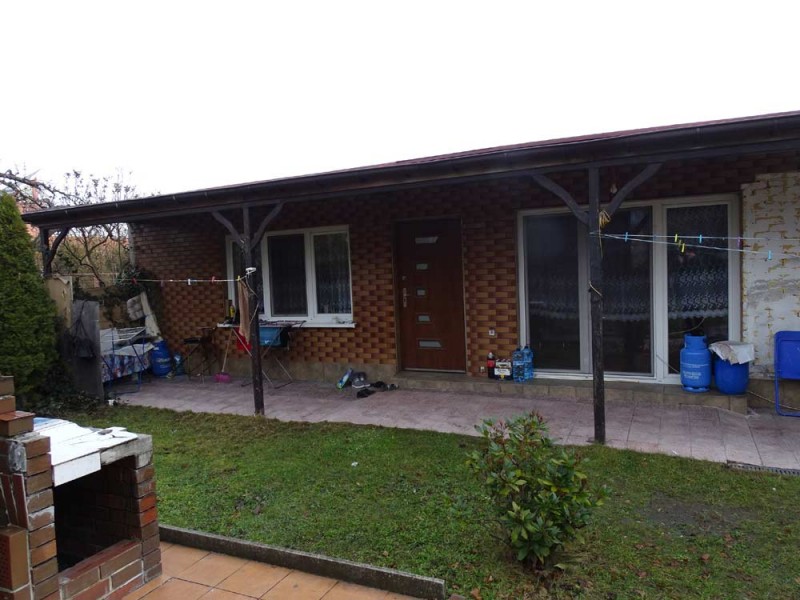 Działka jest ogrodzona i zagospodarowana, jej front został ogrodzony płotem kutym na podmurówce klinkierowej, a posesja jest zamykana bramą przesuwną. Wjazd i chodnik zostały utwardzone betonowymi płytkami. Urządzony jest ogród z licznymi nasadzeniami drzew i krzewów ozdobnych. Na działce znajduje się murowany parterowy budynek mieszkalno - gospodarczy o powierzchni 40 m2 składający się z pokoju i łazienki oraz jedno stanowiskowy garaż przed którym dobudowano zadaszoną wiatę na drugi samochód. Nieruchomość położona jest przy drodze asfaltowej, została przyłączona do sieci energetycznej wodnej i kanalizacyjnej, istnieje możliwość przyłączenia do sieci gazowej.