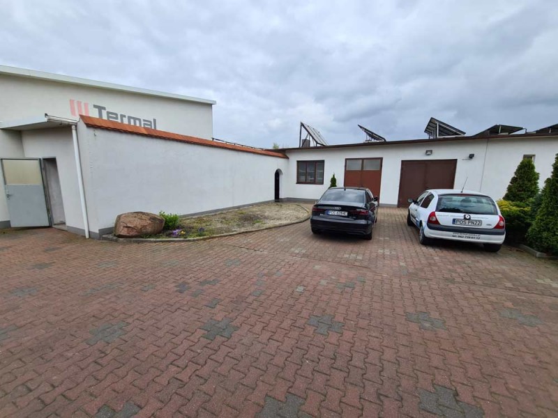 Budynki te są w bardzo dobrym stanie technicznym, zostały wybudowane na konstrukcji stalowej a ściany wykonane zostały z płyt warstwowych. Posadzki w hali głównej są betonowe a w pozostałych budynkach podłoga jest utwardzona betonową kostką. Duży plac manewrowy umożliwia transport towarów samochodami ciężarowymi. Dodatkowo do obiektu przynależy parking na około 20 samochodów.