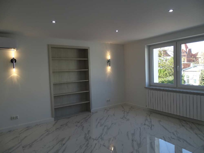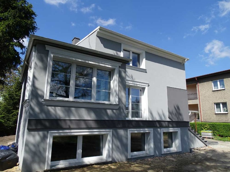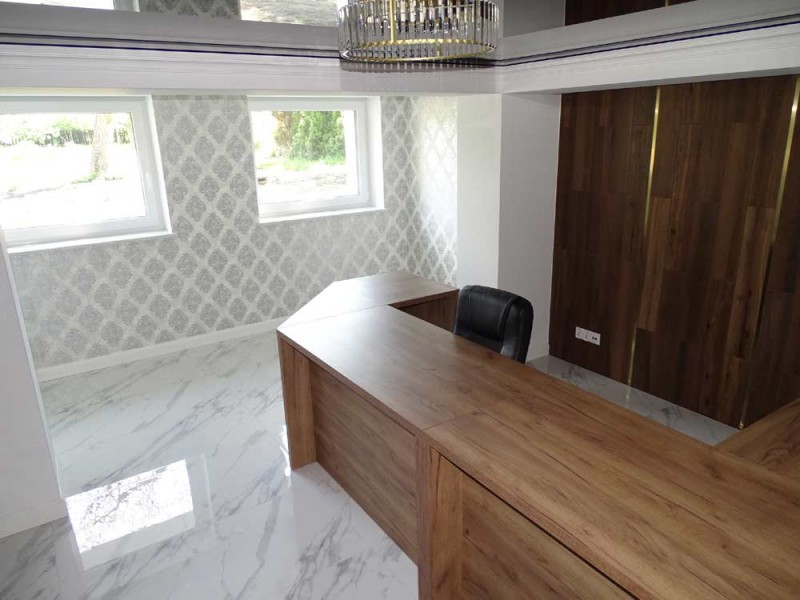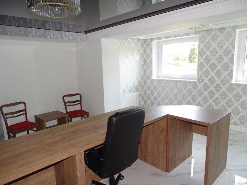 Lokale te są położone w wolnostojącym, piętrowym budynku, który w 2023 roku przeszedł remont generalny. Do każdego biura przyporządkowana jest poczekalnia, gabinety posiadają dostęp do kuchni i toalet. Bardzo wysoki standard wykończenia. Budynek zaprojektowany i wykonany jest w stylu glamour. Każde pomieszczenie jest klimatyzowane. Zamontowane są nowe okna PCV. Na podłogach znajdują marmurowe płytki. Przed budynkiem znajduje się nowy pylon reklamowy z przeznaczeniem na oznaczenie przedsiębiorcy. W budynku znajdują się trzy Kancelarie Adwokackie i jedna forma prawnicza. W tej chwili rozpoczynamy prace na zewnątrz (według projektu widocznego na zdjęciach). Do każdego gabinetu przyporządkowane będzie prywatne miejsce parkingowe. Opłaty za media są zryczałtowane. Teren posesji zostanie utwardzony,w jej tylnej części wygospodarowane będzie miejsce na rekreację i wypoczynek z ławkami i stylową fontanną.