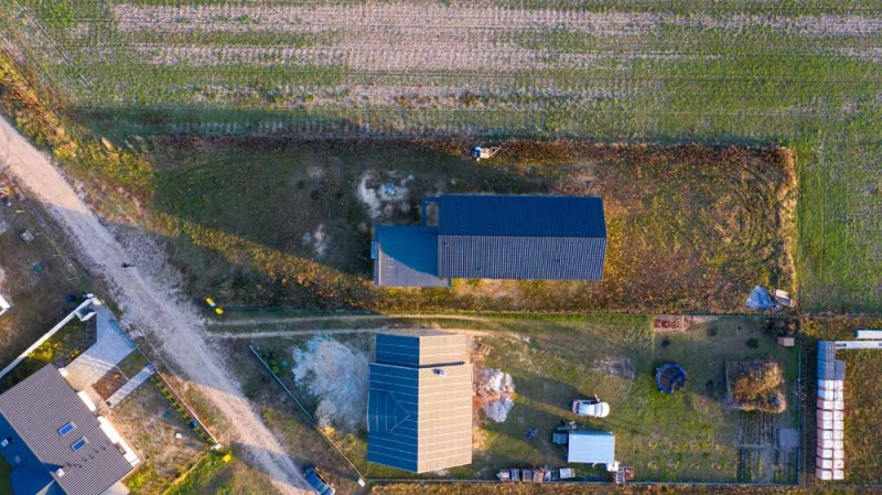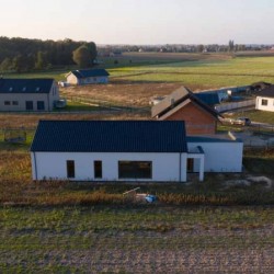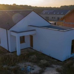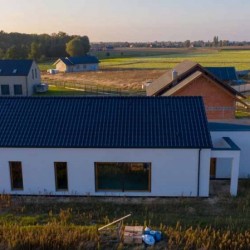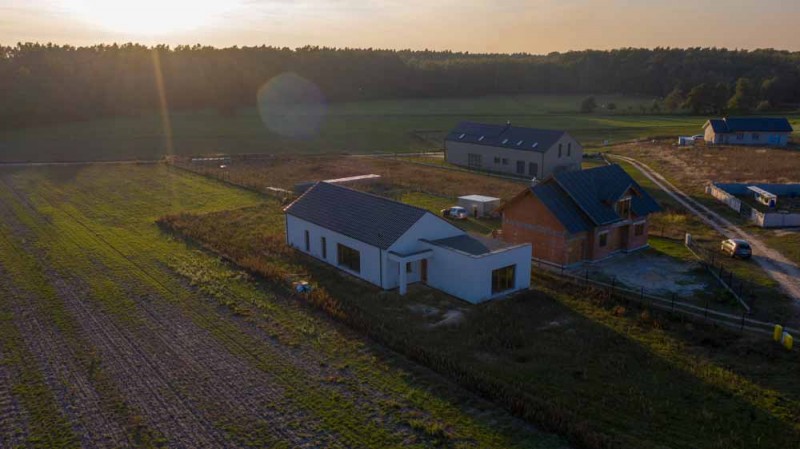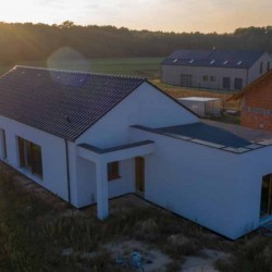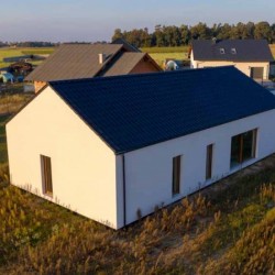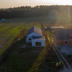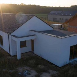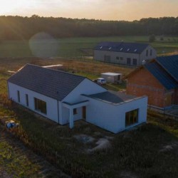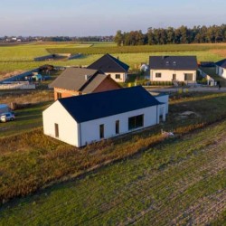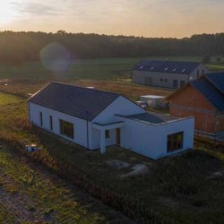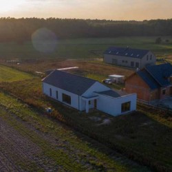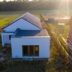 Nieruchomość o powierzchni działki 1547 m2 jest zabudowana jednorodzinnym, wolnostojącym budynkiem mieszkalnym z częścią użytkową, której powierzchnia całkowita wynosi 160,98 m2. Układ funkcjonalny budynku mieszkalnego jednorodzinnego jest czytelny i prosty. Wejście do części mieszkalnej zlokalizowano w elewacji bocznej, prowadzi ono poprzez wiatrołap do przestronnego hollu, z którego mamy dostęp do salonu z jadalnią, i kuchnią, łazienki, garderoby oraz pomieszczenia technicznego. w części wypoczynkowej domu mamy do dyspozycji trzy sypialnie, łazienkę i garderobę.