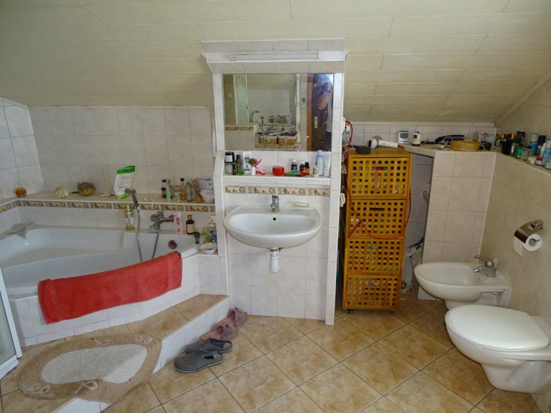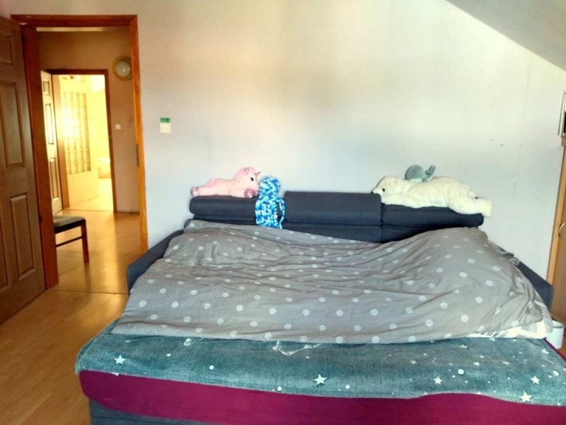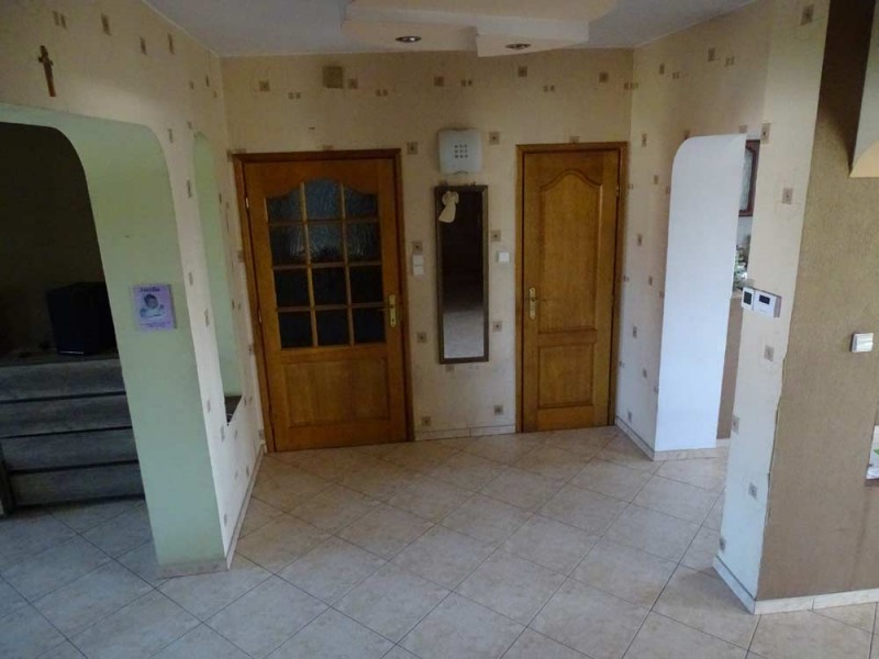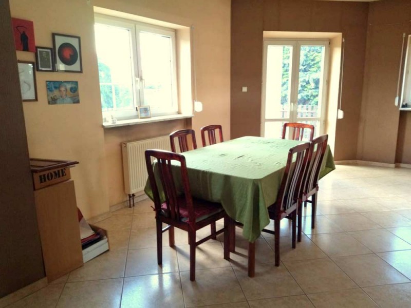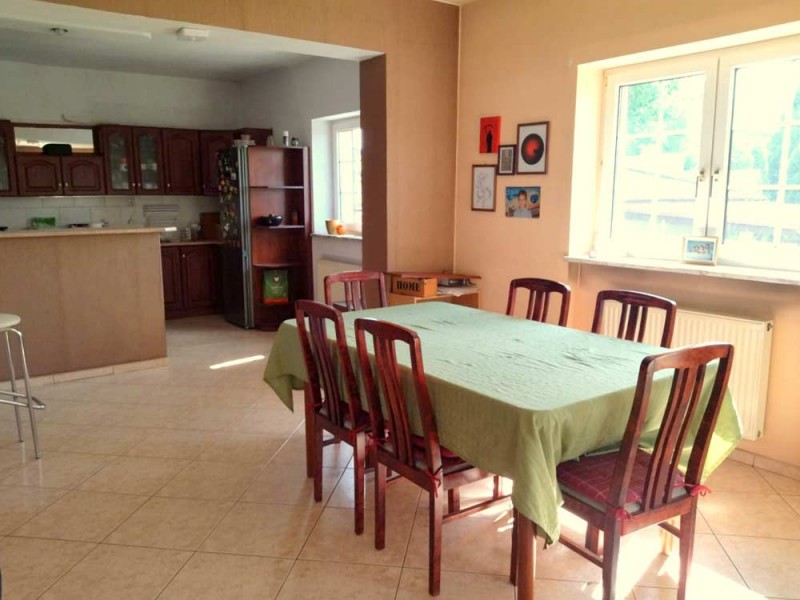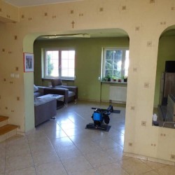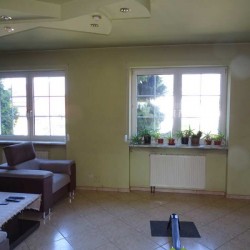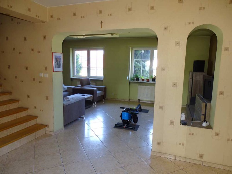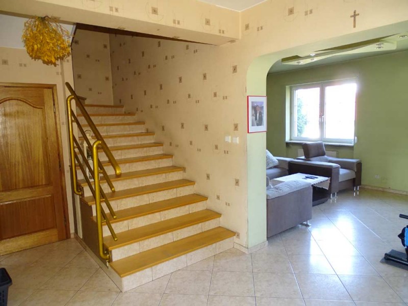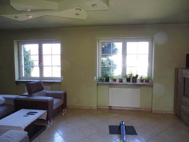 W domu zamontowane są okna PCV w kolorze białym z roletami zewnętrznymi aluminiowymi. Podłogi wyłożone są panelami i kaflami ceramicznymi. Ściany są pokryte gładzią szpachlową. Duża, widna kuchnia została umeblowana meblami na wymiar, posiada sprzęt gospodarstwa domowego. Podłoga i ściany łazienki wykończone są w płytkach ceramicznych, w łazience znajduje się kabina prysznicowa, wanna narożna, geberit, bidet oraz umywalka z lustrem. Stolarka drzwiowa wewnętrzna została wykonana z drewna. Centralne ogrzewanie i wodę ciepłą zasila kocioł gazowy dwu funkcyjny firmy Viessmann, grzejniki są stalowe. Dodatkowo podgrzanie wody wspomaga kolektor słoneczny. Cena obejmuje umeblowanie i wyposażenie kuchni a pozostałe meble są w opcji.