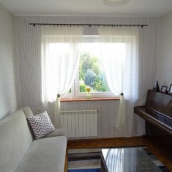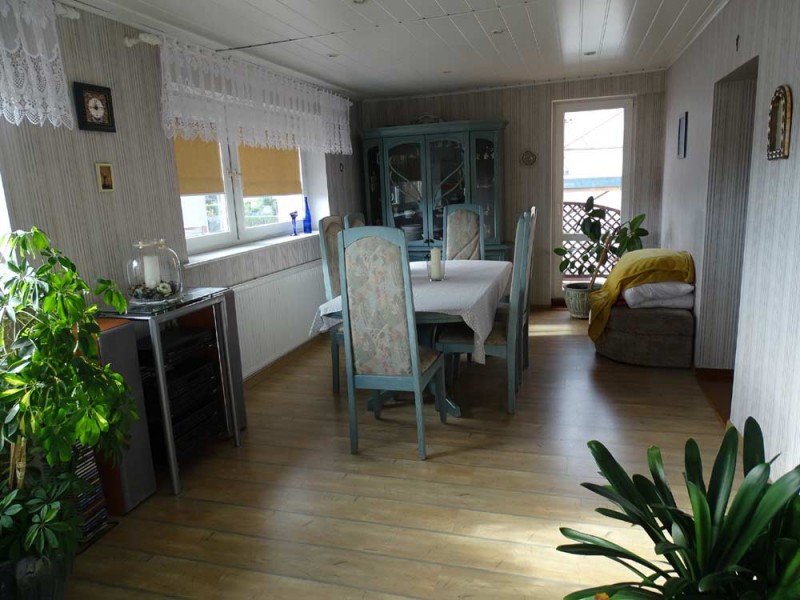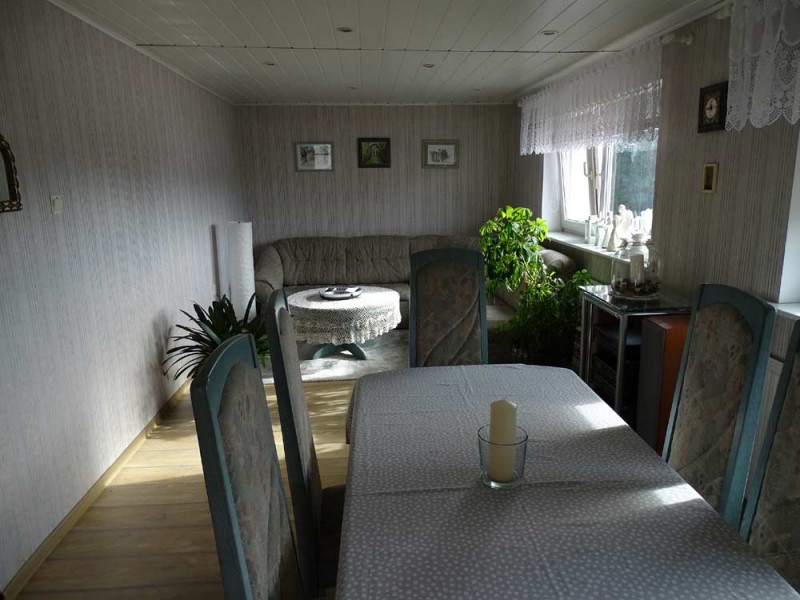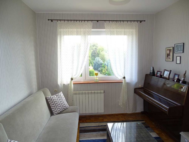 Dom jest wykończony w wysokim standardzie, jest na bieżąca konserwowany i nie wymaga nakładów finansowych. Zamontowane są okna PCV a podłogi wyłożone są mozaiką dębową w bardzo dobrym stanie. Kuchnia jest umeblowana, została wyposażona w sprzęt gospodarstwa domowego. Obie łazienki zostały wykończone w płytkach ceramicznych. Centralne ogrzewanie i woda ciepła zasilana jest z kotła gazowego dwu funkcyjnego firmy Brotje, instalacja jest miedziana a grzejniki aluminiowe. W jednym z pokoi dodatkowo zamontowano kominek typu szwedzkiego. Cena obejmuje zabudowę trwałą - meble kuchenne ze sprzętem agd oraz pojemne szafy garderobiane na wymiar. Pozostałe umeblowanie i wyposażenie jest w opcji.