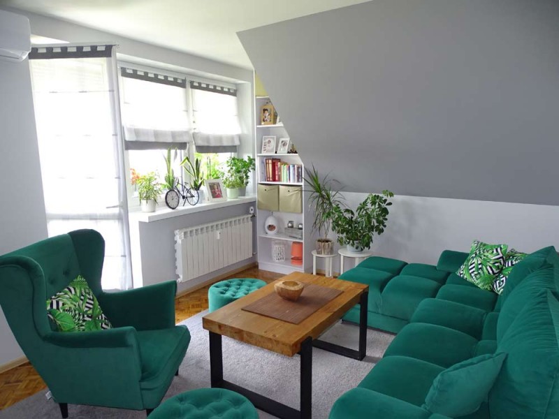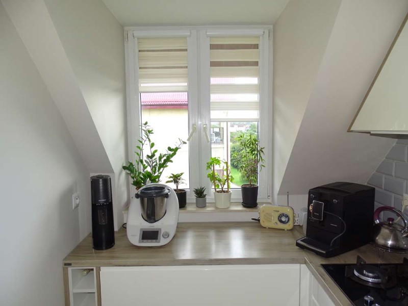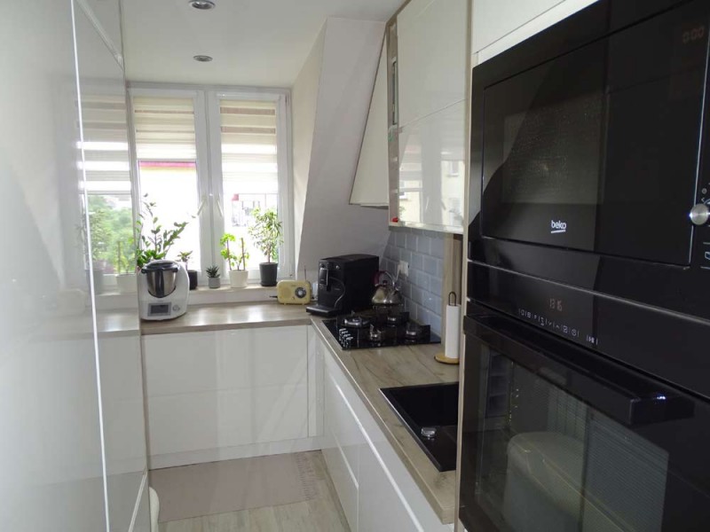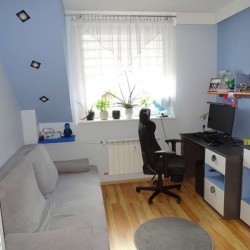 Mieszkanie jest po generalnym remoncie, w bardzo dobrym stanie technicznym i nie wymaga żadnych nakładów finansowych. Usytuowane jest od strony południowej i północnej. Wewnątrz mamy do dyspozycji trzy pokoje, kuchnię, łazienkę, przedpokój oraz zamykany roletami zewnętrznymi aluminiowymi balkon. Drugi poziom - poddasze obejmuje jedno duże pomieszczenie i toaletę. Posiada ono oddzielne wejście z klatki schodowej, jednak istniej możliwość połączenia obu tych poziomów za pomocą schodów zabiegowych. Do lokalu przynależy pomieszczenie w piwnicy budynku, mamy również możliwość korzystania z ogólnodostępnej rowerowni i wózkowni.