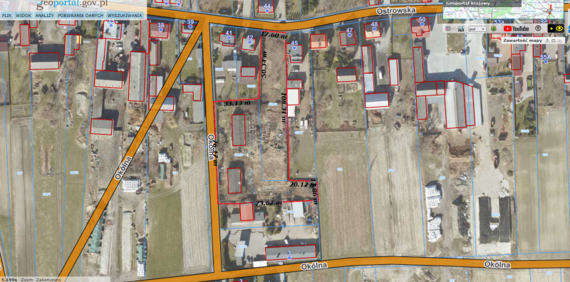 Działki nie zostały objęte miejscowym planem zagospodarowania przestrzennego, posiadają dojazd z dwóch ulic: od ulicy Okólnej i od ulicy Ostrowskiej. Na działkach posadowione są dwie hale murowane o powierzchni użytkowej: I hala około 220 m2, II hala około 150 m2 - przeznaczona do remontu, oraz zadaszona wiata o powierzchni użytkowej około 200 m2. Budynki są wybudowane z pustaka żużlowego. teren posesji jest częściowo utwardzony.