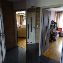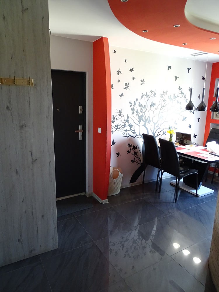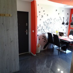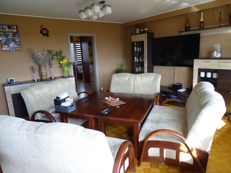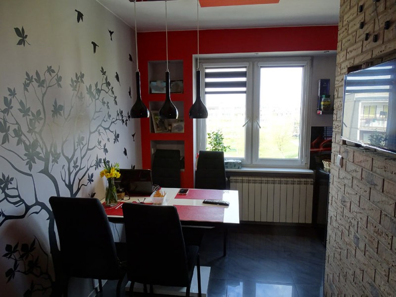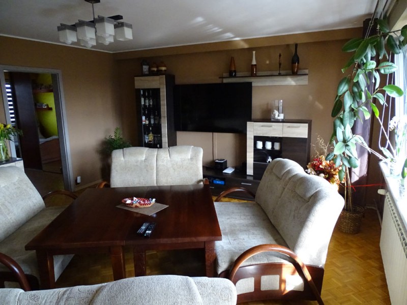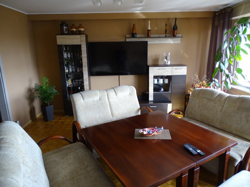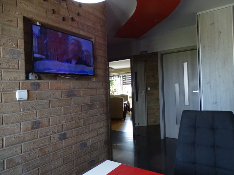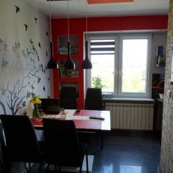 Mieszkanie jest po generalnym remoncie i przebudowie, wykończone w nowoczesnym, przytulnym stylu i nie wymaga żadnych nakładów finansowych. Podczas prac modernizacyjnych wymienione zostały instalacje elektryczne, wodno - kanalizacyjne i gazowe a ściany zostały pokryte gładzią szpachlową. Wymieniono również stolarkę drzwiową wewnętrzną wraz z ościeżnicami oraz drzwi wejściowe do mieszkania Zamontowane są okna z profili PCV dwukolorowe z roletkami wewnętrznymi dzień - noc. Podłogi zostały wyłożone wielkoformatowymi kaflami ceramicznymi i mozaiką w bardzo dobrym stanie. Jeden z pokoi został połączony z kuchnią w wyniku czego mieszkanie zyskało jadalnię. pomieszczenie to jest dobrze doświetlone, kuchnia została umeblowana wysokiej jakości meblami na wymiar i wyposażona w sprzęt gospodarstwa domowego - dwie lodówki, zmywarkę, płytę gazową Solgas, kuchenkę mikrofalową, pochłaniacz pary i piekarnik elektryczny. Fronty meblowe są na wysoki połysk a blaty kuchenne wykonano z granitu indyjskiego. Jadalnia jest umeblowana znajduje się w niej stół, krzesła oraz telewizor. Łazienka jest połączona z toaletą, jej ściany i podłoga wykończone są w płytkach i mozaice ceramicznych tutaj do dyspozycji mamy wannę narożną, prysznic z deszczownicą, geberit , umywalkę wraz z szafką i pralkę automatyczną. Duży pokój jest klimatyzowany. Centralne ogrzewanie i wodę ciepłą zasila ciepłociąg miejski. Cena obejmuje zabudowę trwałą - meble kuchenne wraz z wyposażeniem agd, dwie pojemne szafy garderobiane na wymiar znajdujące się w jednej z sypialni i przedpokoju oraz inne umeblowanie znajdujące się w mieszkaniu (również dwa telewizory - mniejszy znajdujący się w jadalni i drugi telewizor 65 " znajdujący się w salonie).