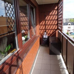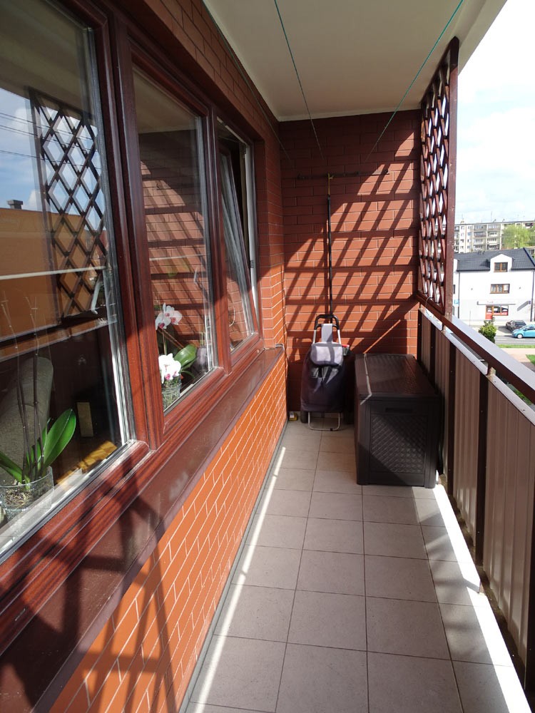 Wewnątrz mamy do dyspozycji trzy pokoje, kuchnię, łazienkę, przedpokój oraz duży, usytuowany od strony południowej i wykończony płytką elewacyjną balkon. Do lokalu przynależy pomieszczenie znajdujące się w piwnicy, mamy również możliwość korzystania z rowerowni i wózkowni znajdującej się przy wejściu do klatki schodowej.