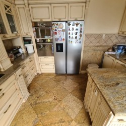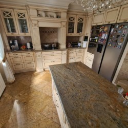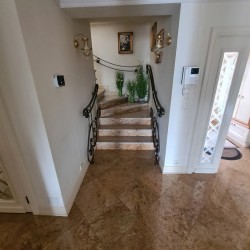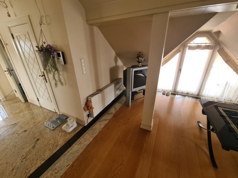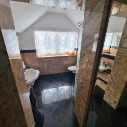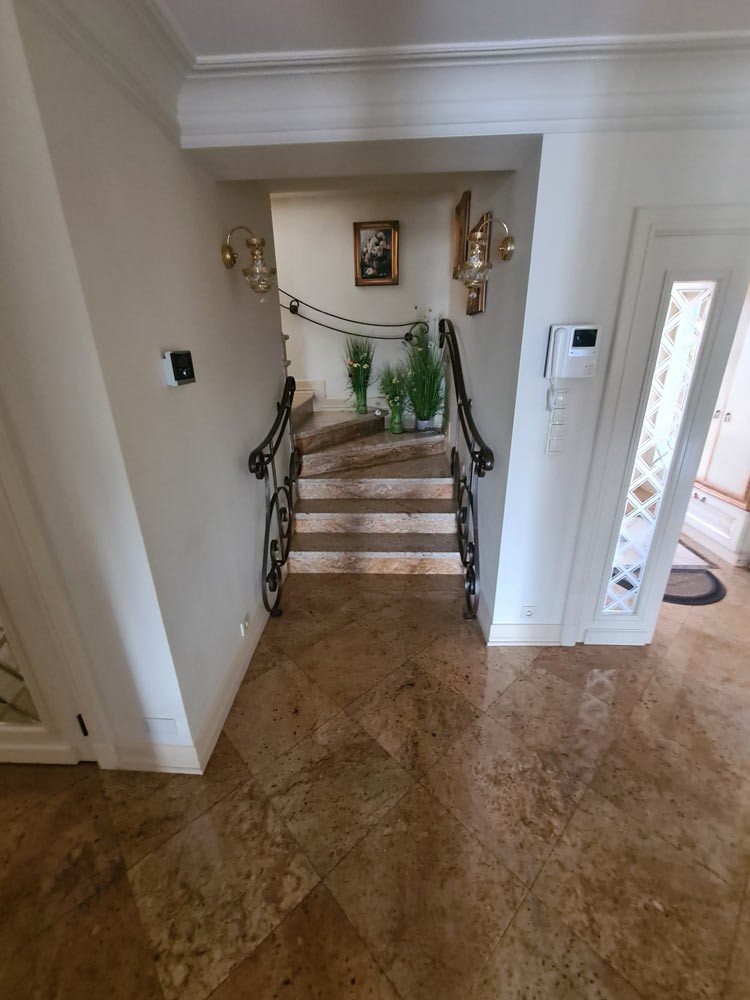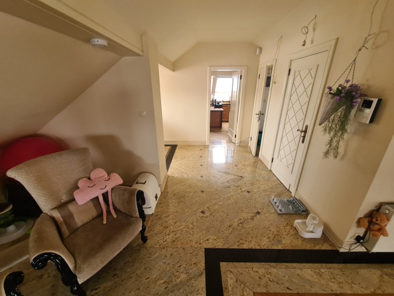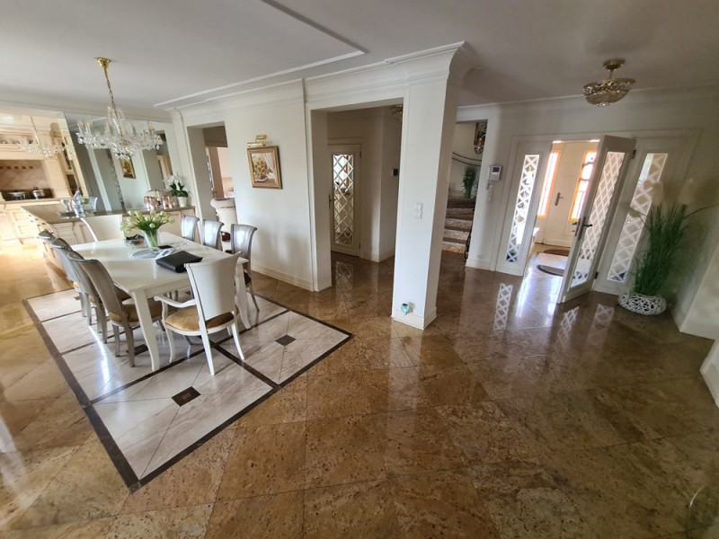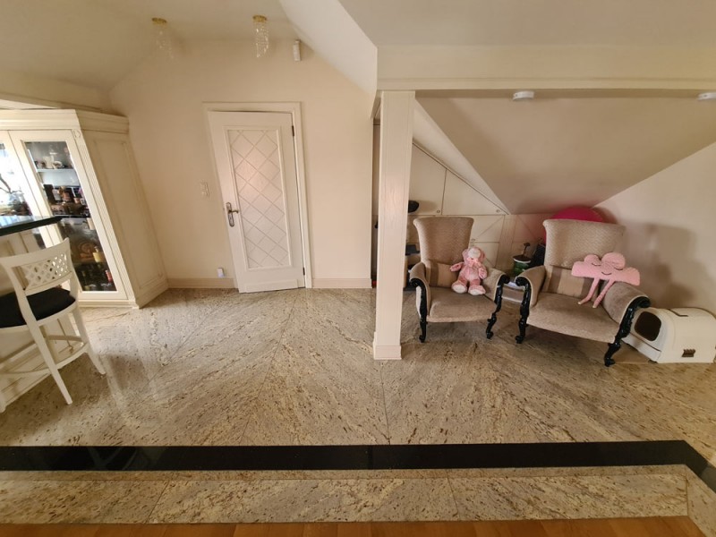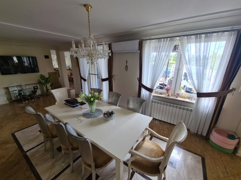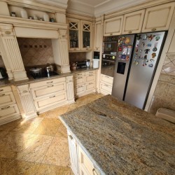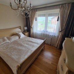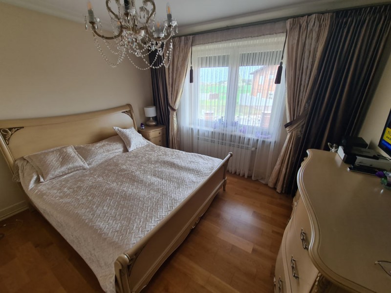 Kuchnia z nowoczesną stylową zabudową jest wyposażona w sprzęt gospodarstwa domowego. Meble kuchenne w stylu prowansalskim posiadają blaty wykonane również z granitu. Pomieszczenia znajdujące się na piętrze stylistyką nawiązują do części parterowej co tworzy jedną, spójną całość. 2 łazienki są wykończone wysokiej klasy granitem, a jedna została w płytkach ceramicznych.