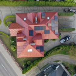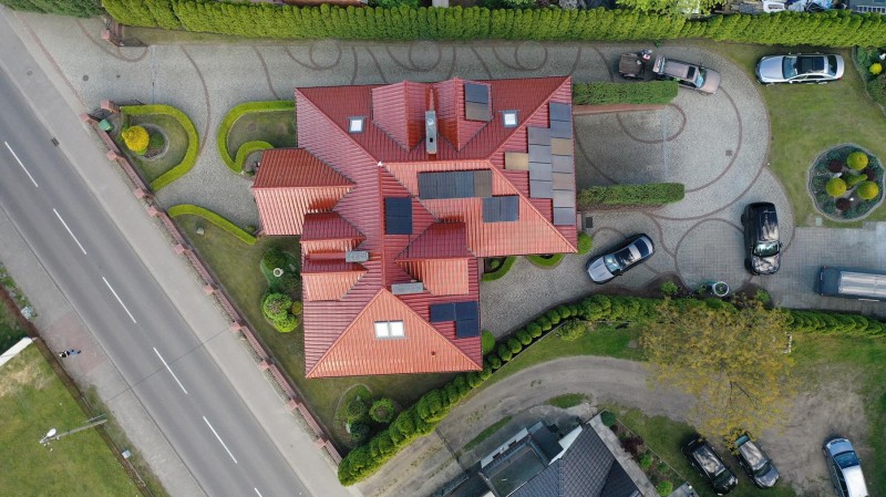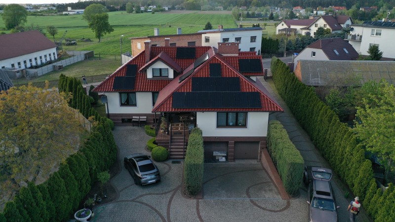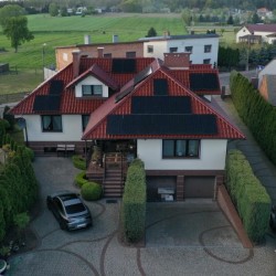 Centralne ogrzewanie podłogowe i wodę ciepłą zasila kocioł gazowy dwu funkcyjny z zasobnikiem. Dodatkowo w domu został zainstalowany centralny odkurzacz. Zastosowano wiele wiele urządzeń podnoszących komfort takich jak klimatyzacja sufitowa z funkcją ogrzewania, rekuperacja, monitoring i system alarmowy. Dużą korzyść finansową z tytułu opłat za energię elektryczną daje znajdująca się na dachu budynku instalacja fotowoltaiczna o mocy 12 kW. Elewacja zewnętrzna domu została ozdobiona toczonymi grubymi kolumnami granitowymi, podobnie jak schody wejściowe oraz taras podmurówka kutego ogrodzenia posesji które również zostały wyłożone granitem. Drzwi wejściowe są wykonane z litego drewna ozdobione okutymi elementami.