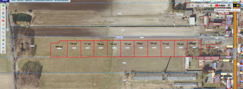 Działki zlokalizowane są przy drodze wewnętrznej, nie zostały objęte miejscowym planem zagospodarowania przestrzennego. Front działek usytuowany jest od strony północnej. Media: woda w drodze wewnętrznej, energia elektryczna, gaz oraz kanalizacja w ulicy Szkolnej.