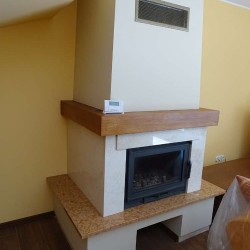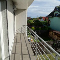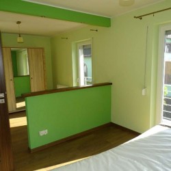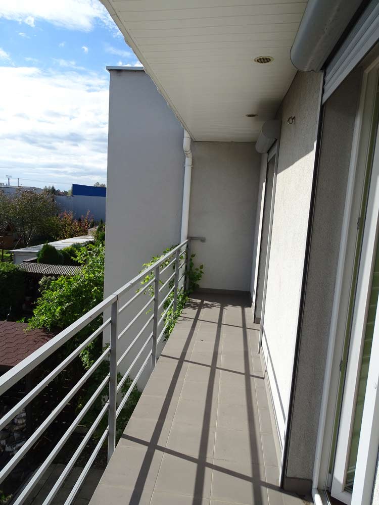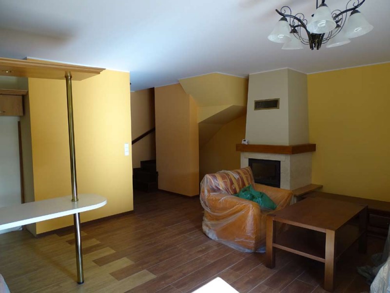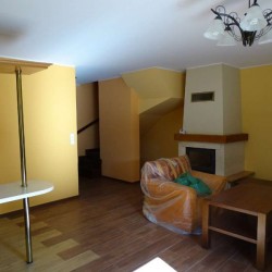 Na parterze mamy do dyspozycji salon z kominkiem i wyjściem na taras, otwartą w pełni umeblowaną i wyposażoną kuchnię, toaletę, pomieszczenie techniczne z brodzikiem oraz garaż. Piętro obejmuje 2 sypialnie, łazienkę, garderobę oraz 2 duży, usytuowany od strony południowej balkon. Pierwotnie na piętrze znajdowały się trzy sypialnie i istnieje możliwość przywrócenia takiego pierwotnego.