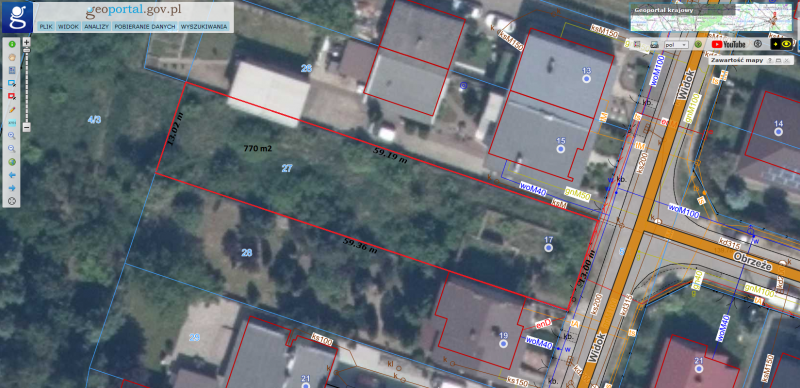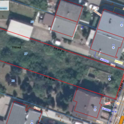Działka nie została objęta miejscowym planem zagospodarowania przestrzennego, posiada powierzchnię 770 m2 i przeznaczona jest pod budowę 1/2 bliźniaka. Na działce znajdują się fundamenty oraz częściowo mury budynku, które przeznaczone są do rozbiórki (właściciel rozbierze je na własny koszt). Wymiary działki: szerokość około 13 metrów, głębokość około 59 metrów. Media w ulicy: energia elektryczna, woda, kanalizacja oraz gaz.