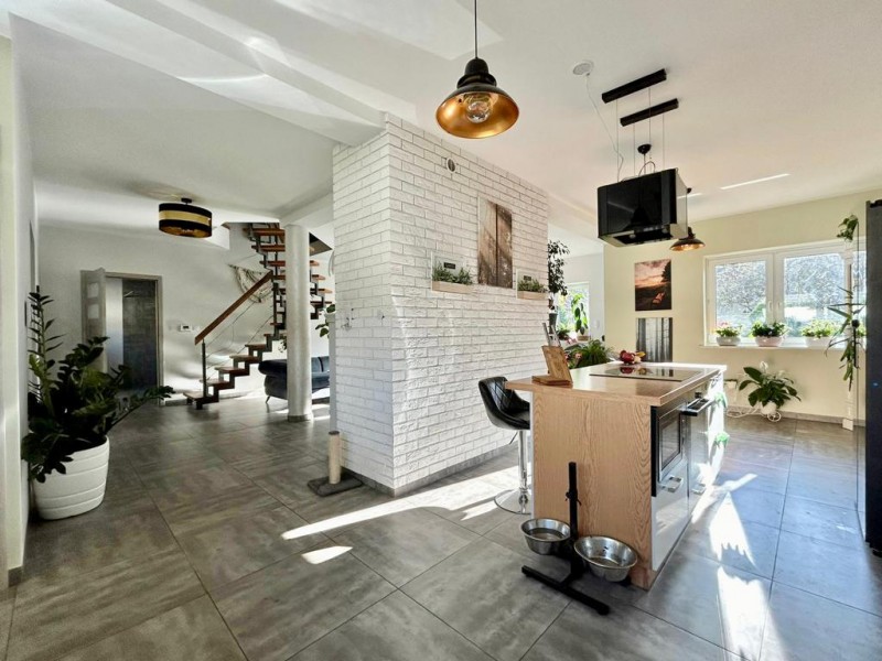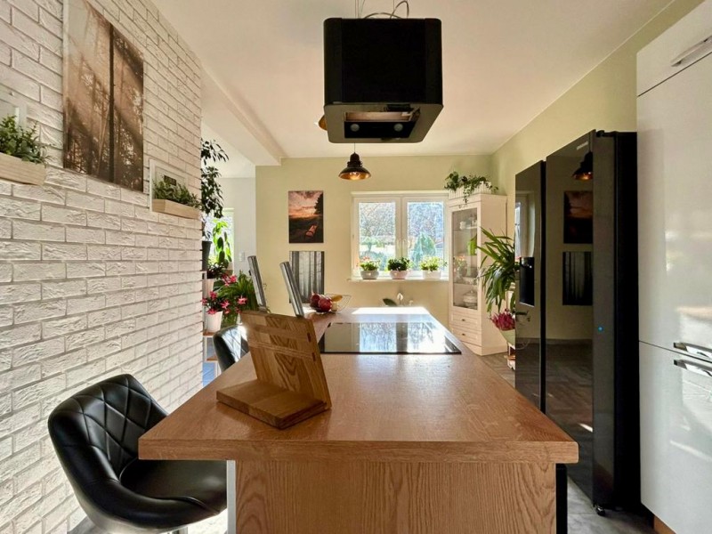- półotwarta przestronna kuchnia z podręczną spiżarnią/ pomieszczeniem gospodarczym i salonem
