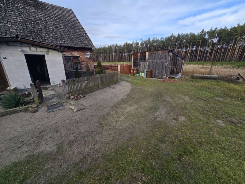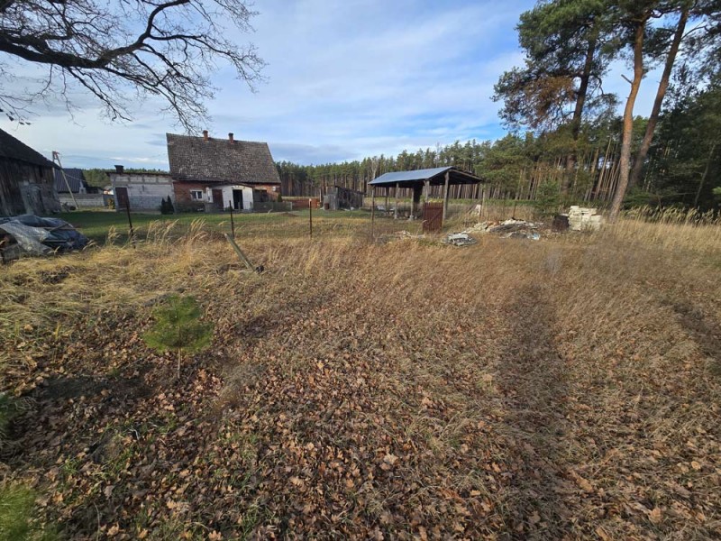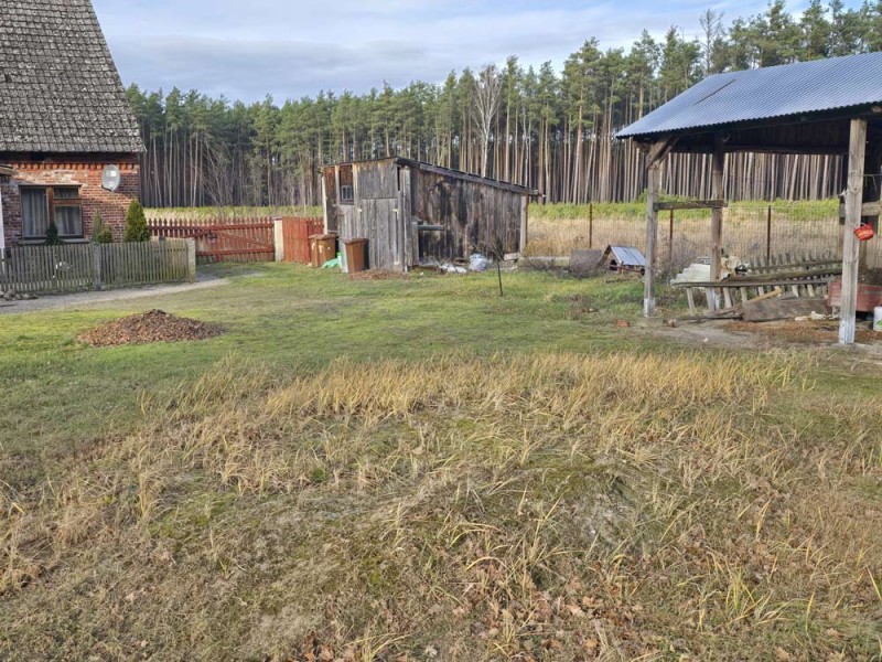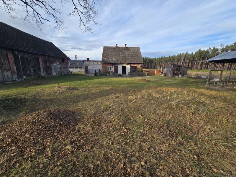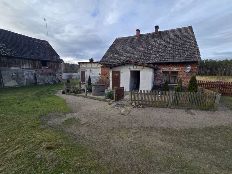 Nieruchomość o powierzchni działki 3000 m2 jest zabudowana wolnostojącym, około 100 letnim domem, którego powierzchnia użytkowa wynosi około 70 m2. Wewnątrz znajdują się trzy pokoje, kuchnia, łazienka oraz dwa korytarze, natomiast w dobudówce do dyspozycji posiadamy kolejną łazienkę oraz kotłownie. Dach został pokryty dachówką cementową, która wymaga wymiany. Okna w budynku są drewniane, starego typu. Centralne ogrzewanie zasila piec na miał i węgiel.