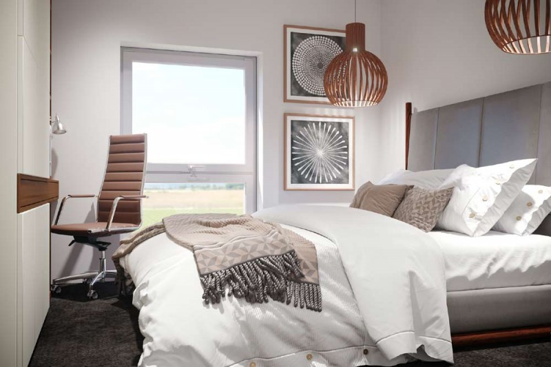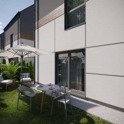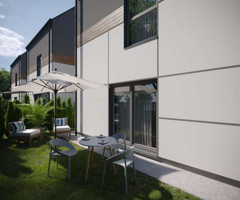 Zaprojektowane okna PCV z możliwością instalacji żaluzji lub rolet okiennych w celu zachowania prywatności mieszkańców oraz aby zapobieganiu przegrzewania się budynków.