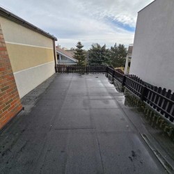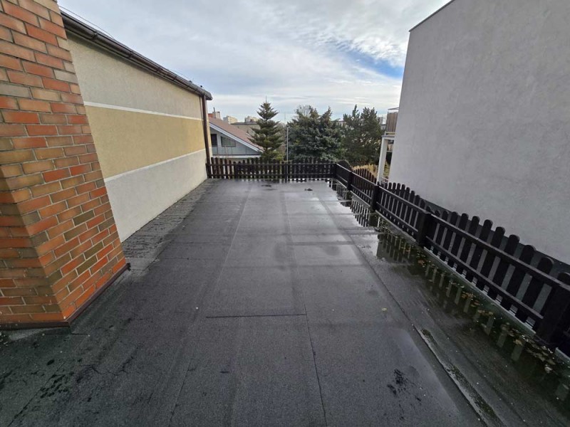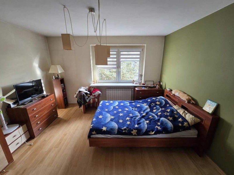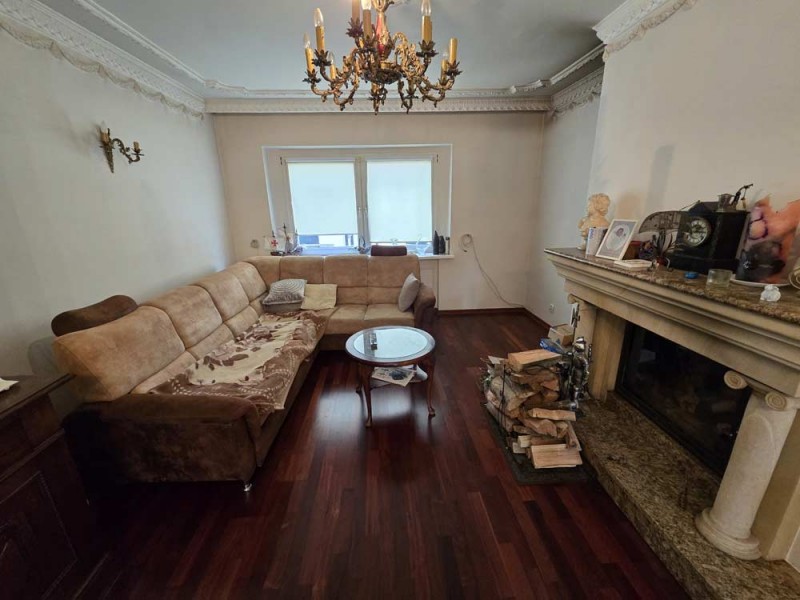 Na parterze znajduje się salon o powierzchni około 40 m2, z kominkiem, gabinet, kuchnia i łazienka. Na piętrze mamy do dyspozycji dwie sypialnie, holl, drugą łazienkę i duży taras o powierzchni 60 m2. Piwnica składa się z trzech pomieszczeń gospodarczych.