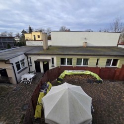 Drugi z budynków jest budynkiem parterowym i pochodzi z lat 90-tych. Jego powierzchnia to ok. 120 m2. W chwili obecnej jest przystosowany do prowadzenia działalności związanej z wynajmem kwater pracowniczych, i istnieje możliwość kontynuowania. Wewnątrz składa się z dziewięciu pokoi, trzech łazienek kuchni i korytarza. Jest umeblowany, wyposażony i dostosowany do maksymalnie 26 miejsc noclegowych. Centralne ogrzewanie i wodę ciepłą zasila kocioł gazowy dwu funkcyjny.