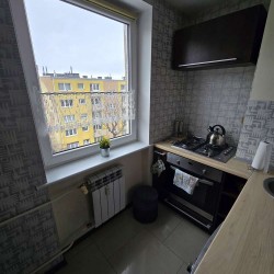 Zamontowane są okna PCV z roletkami wewnętrznymi a na podłogach znajdują się panele i kafle ceramiczne. Wymieniona została instalacja wodna i gazowa. Widna kuchnia jest umeblowana meblami na wymiar, posiada sprzęt agd. Podłoga i ściany łazienki zostały wyłożone w płytkach ceramicznych, tutaj mamy do dyspozycji kabinę prysznicową z hydromasażem. Centralne ogrzewanie zasila ciepłownia miejska a wodę podgrzewa nowa terma gazowa. Grzejniki są aluminiowe.