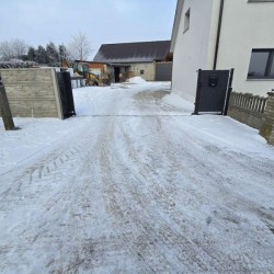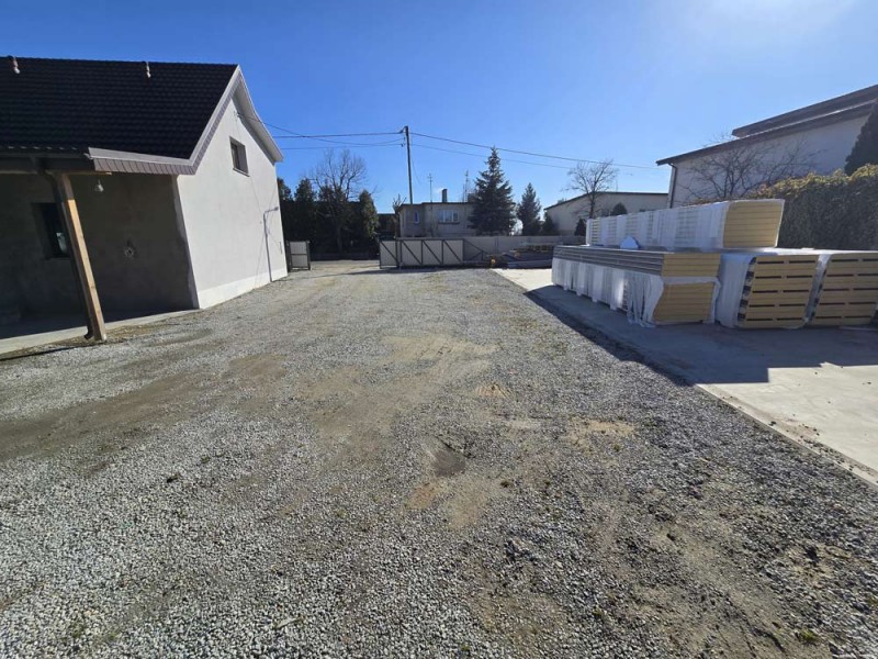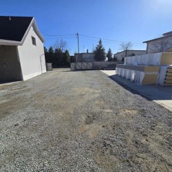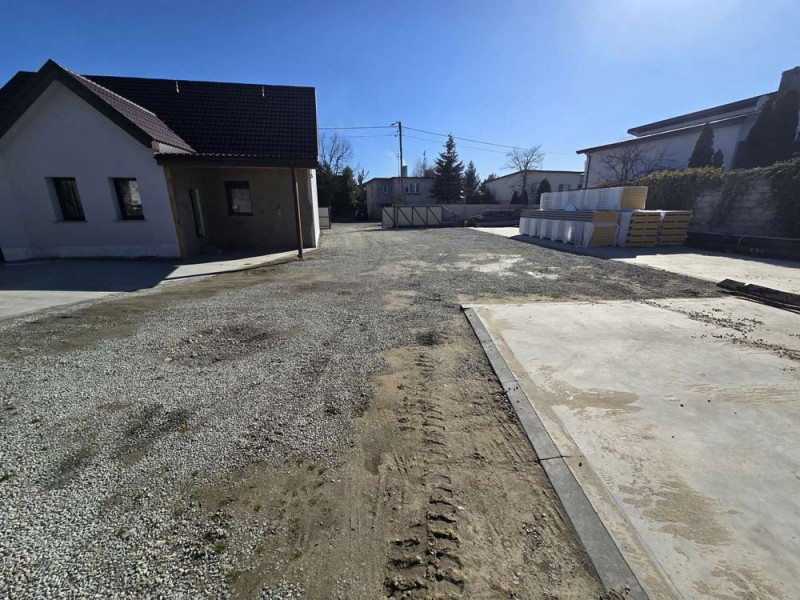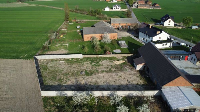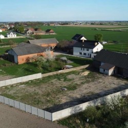Działka jest ogrodzona i zagospodarowana, jej front został ogrodzony płotem z płyt betonowych.
