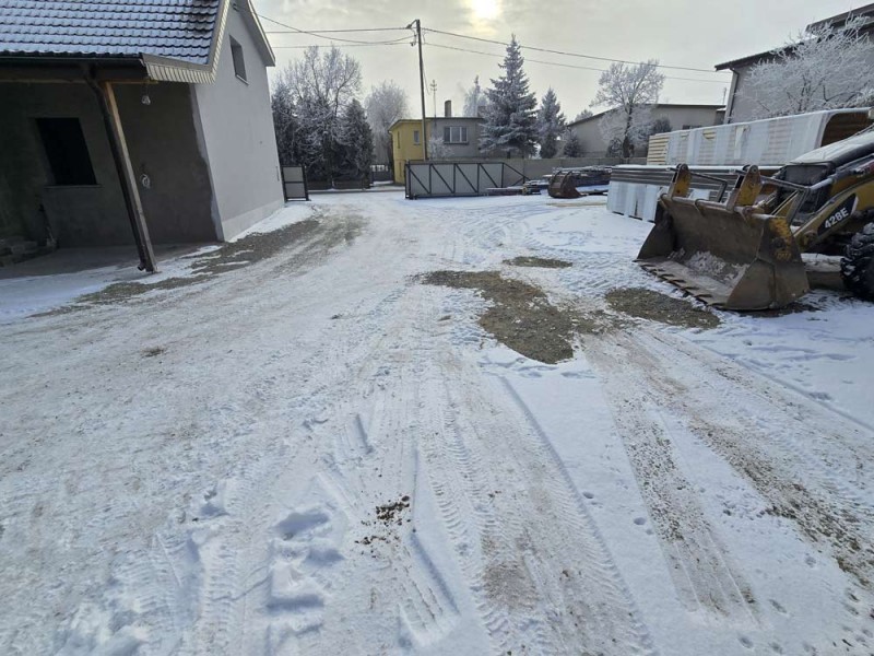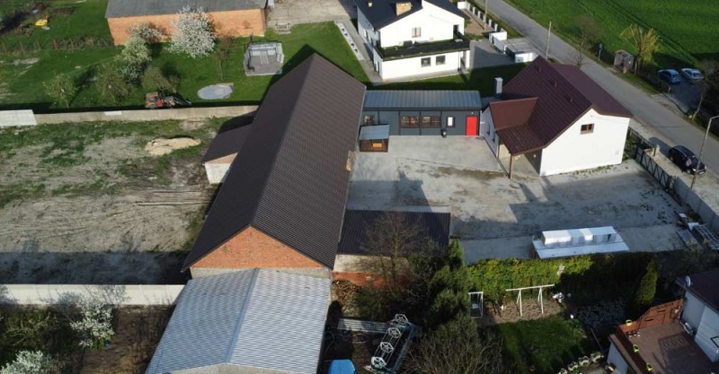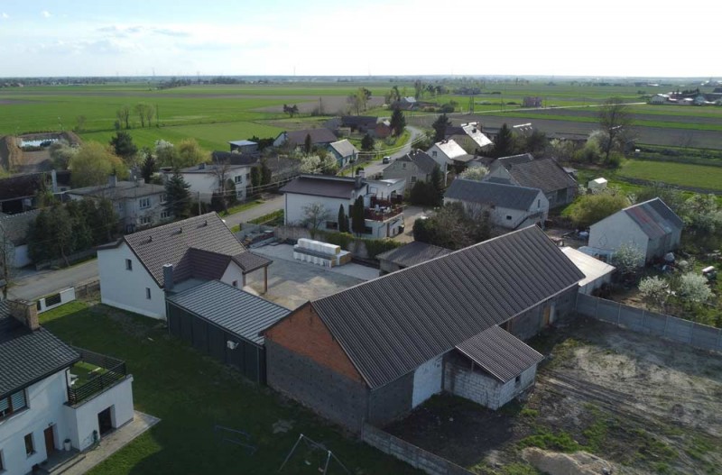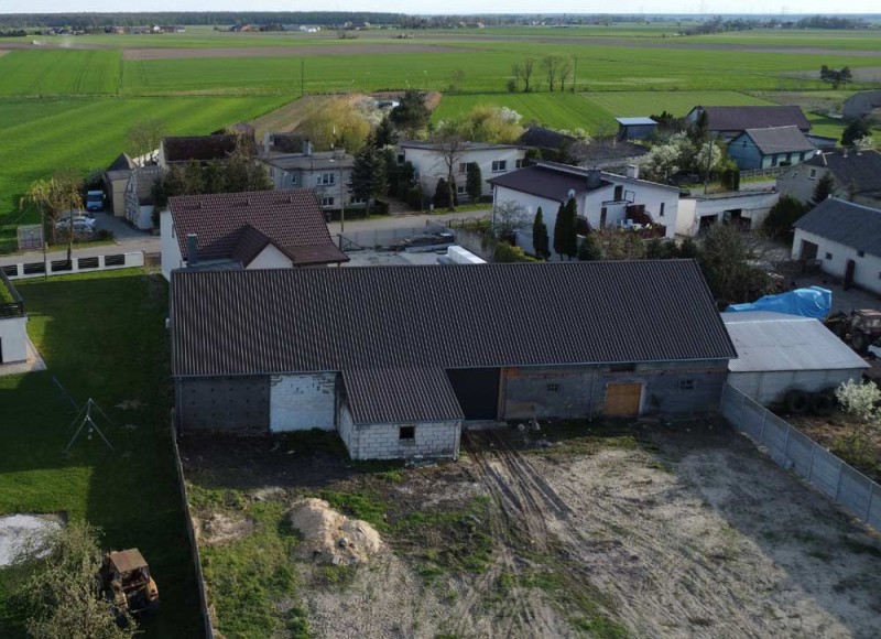Trzecim budynkiem jest hala magazynowo - garażowa o powierzchni około 300 m2. Wybudowana została z cegły a posadzka jest betonowa. Budynek ten jest zamykana jest dwoma bramami wjazdowymi. Dach posiada nowe opierzenia a jego pokrycie główne to blacha trapezowa.