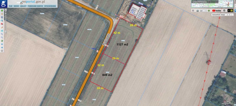 - 1127 m2, wymiary: szerokość około 42 metry, głębokość około 26 metrów, cena 129 zł/m2
