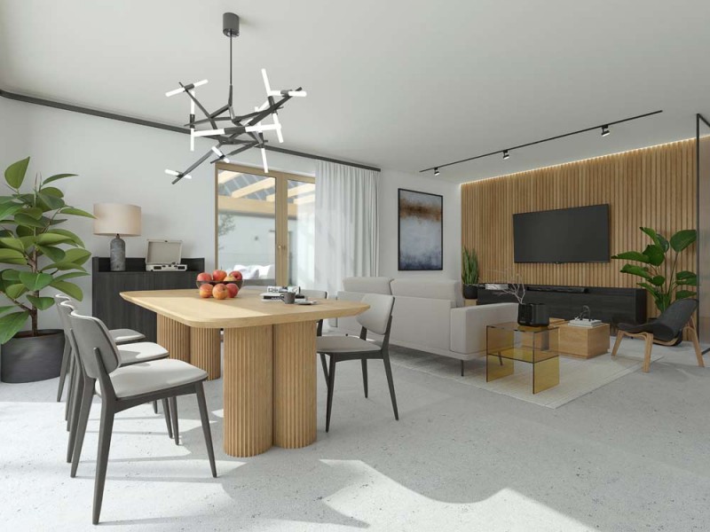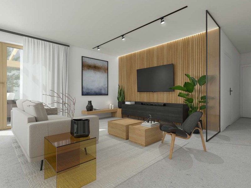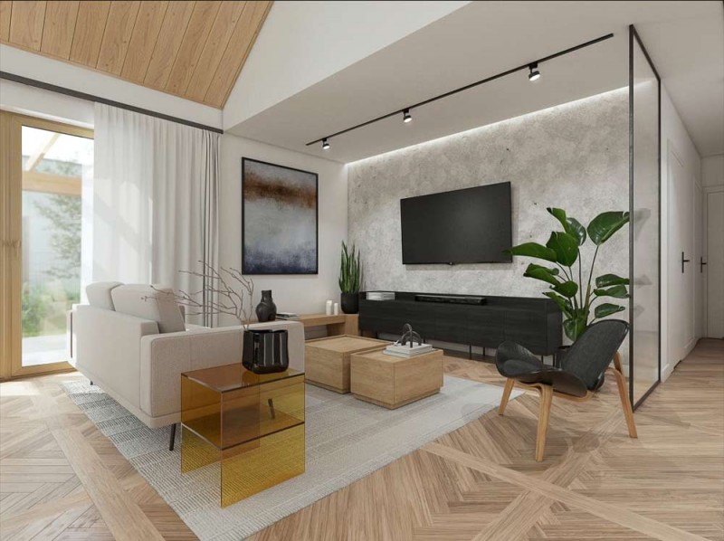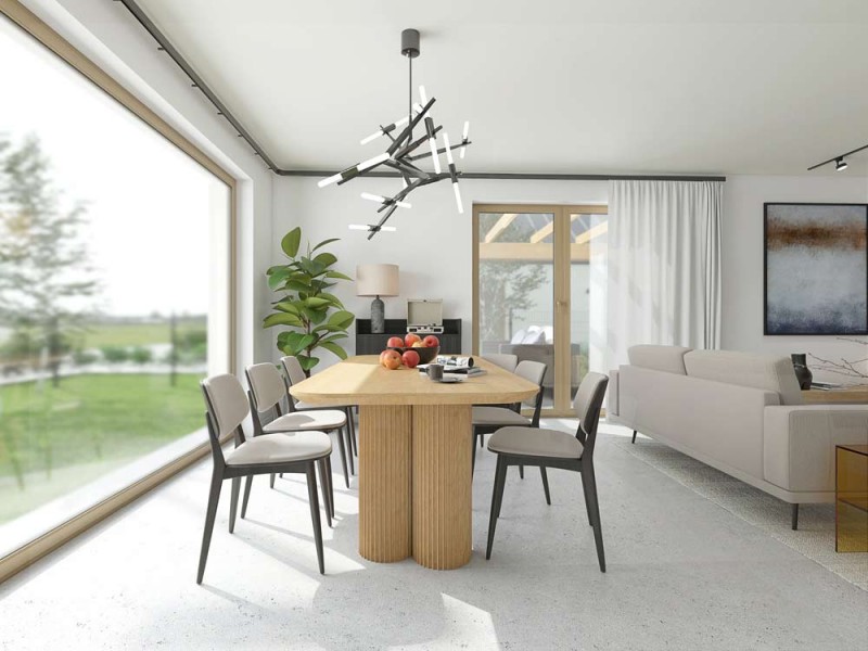 Dla komfortu i wygody przyszłych użytkowników wnętrze domu zostanie wyposażone w ogrzewanie podłogowe. W oknach zostaną zamontowane rolety zewnętrzne elektryczne aluminiowe. W salonie zostanie zamontowana żaluzja fasadowa.