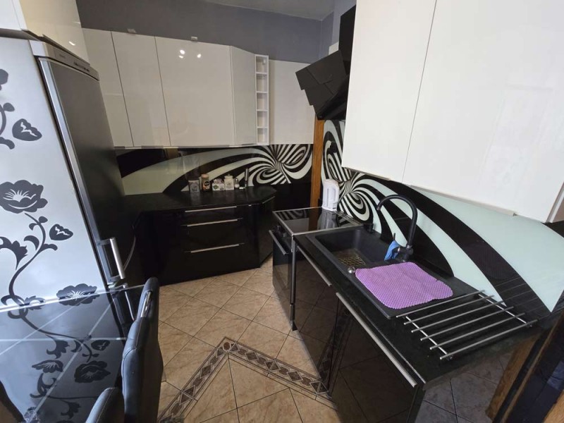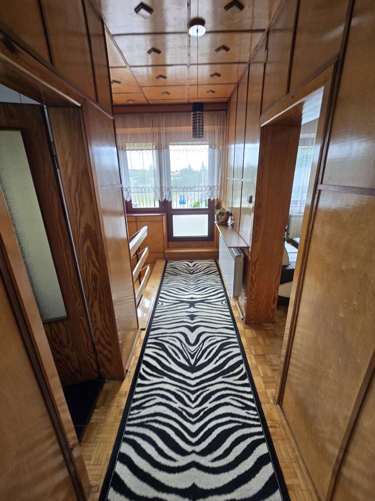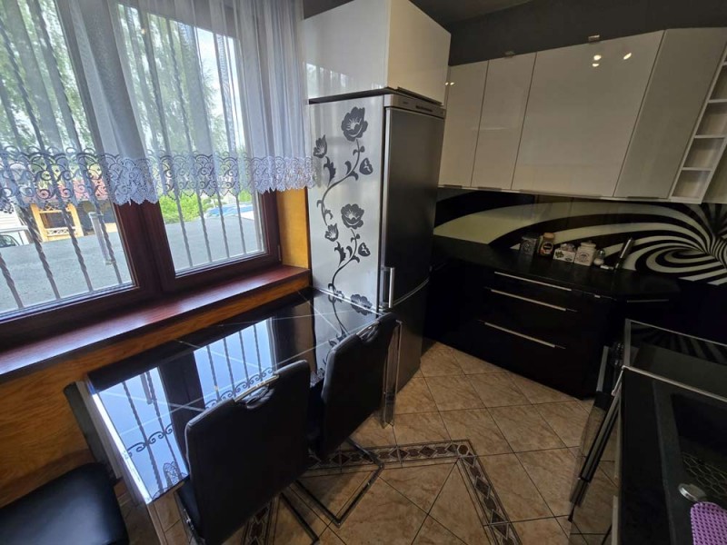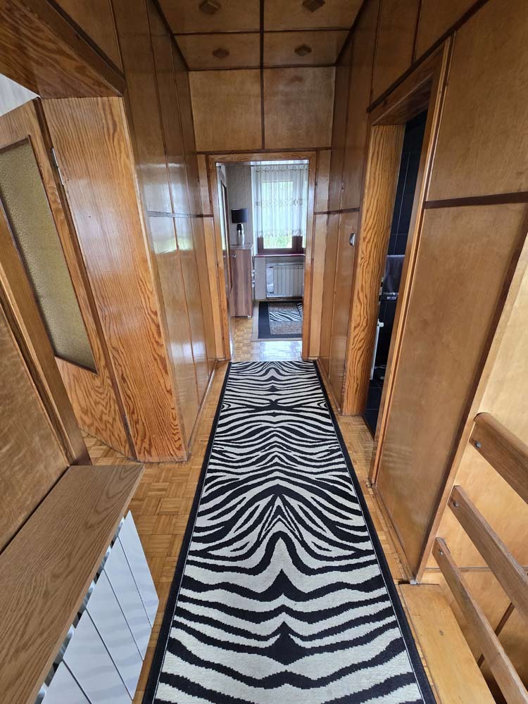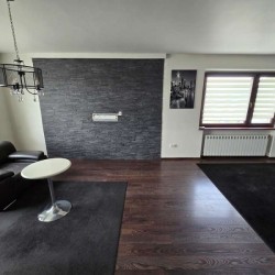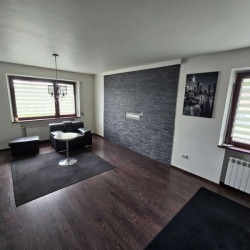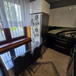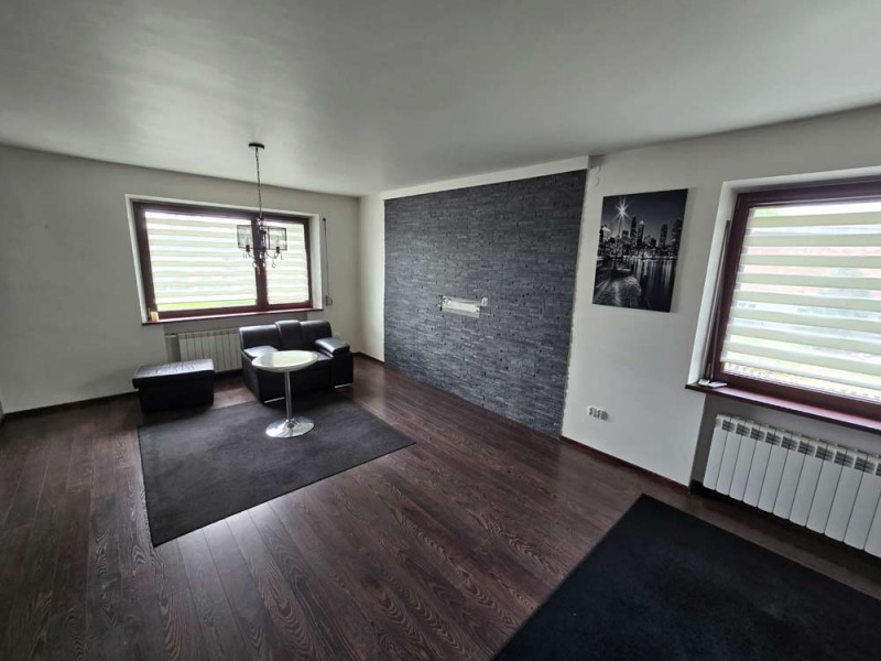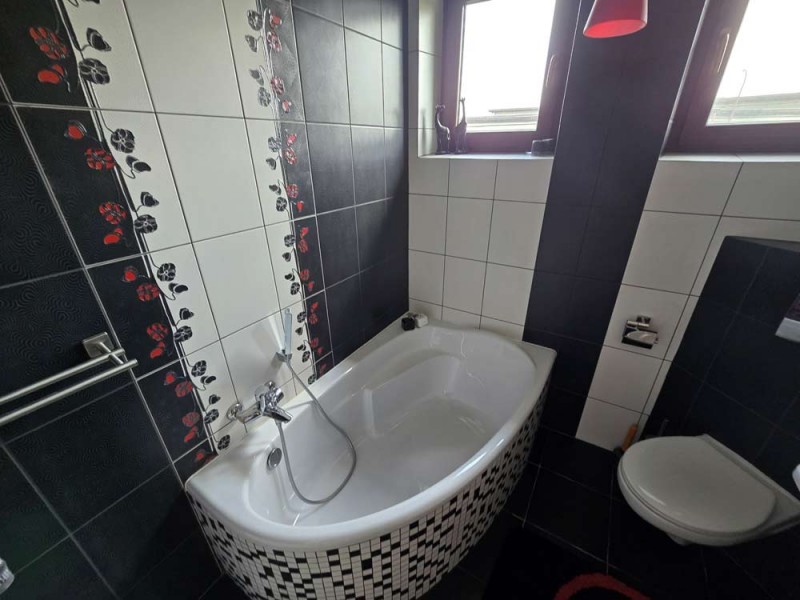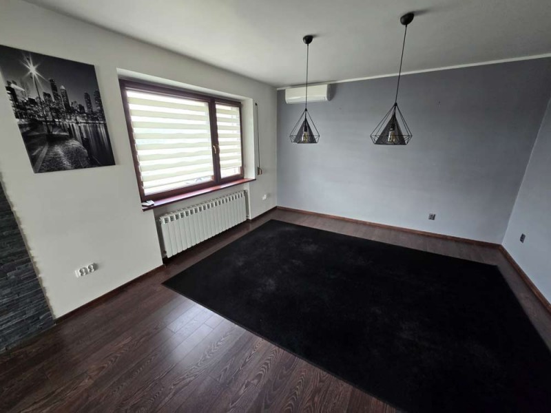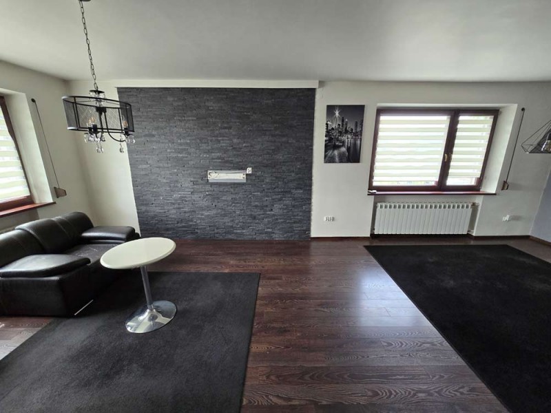 Zamontowane są okna z profili PCV z roletami zewnętrznymi aluminiowymi a na podłogach znajduje się mozaika, panele i kafle ceramiczne. Widna kuchnia jest umeblowana meblami na wymiar, wyposażono ją w sprzęt gospodarstwa domowego. Podłogi i ściany obu łazienek wyłożone są w płytkach ceramicznych, zamontowane są w nich wanny narożne. Toaleta znajdująca się na parterze jest osobna. Centralne ogrzewanie i wodę ciepłą zasila kocioł gazowy dwu funkcyjny oraz piec na węgiel, grzejniki są aluminiowe. W jednym z pomieszczeń mamy do dyspozycji klimatyzację. Cena obejmuje zabudowę trwałą - meble kuchenne wraz ze sprzętem agd, pojemną szafę garderobianą na wymiar oraz pozostałe umeblowanie znajdujące się w domu.