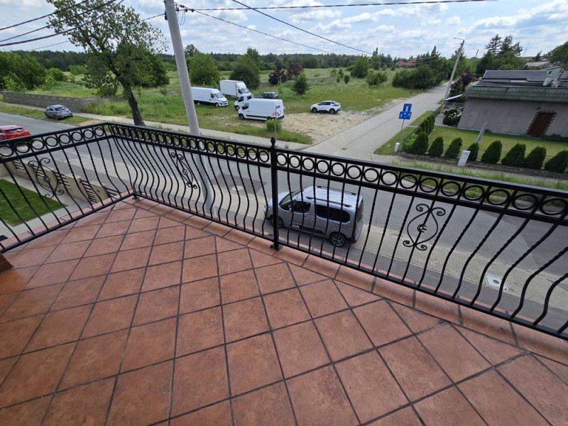 Działka jest ogrodzona i zagospodarowana, jej front został ogrodzony płotem kutym a teren posesji jest zamykany bramą sterowaną automatycznie. Wjazd i chodnik zostały utwardzone betonową kostką.