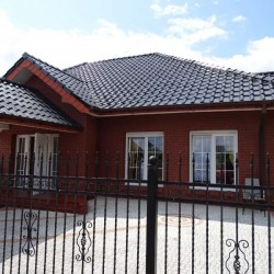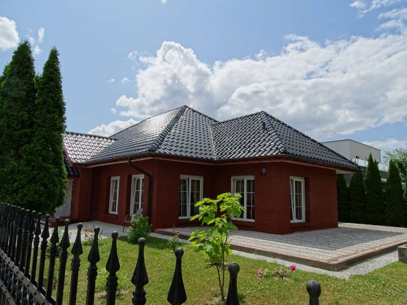Przedstawiamy Państwu ofertę sprzedaży nieruchomości, która położona jest w zachodniej dzielnicy Ostrowa Wielkopolskiego w rejonie ulicy Poniatowskiego. Nieruchomość o powierzchni działki 868 m2 zabudowana jest wolnostojącym, jednorodzinnym budynkiem mieszkalnym którego powierzchnia wynosi 184 m2. Jest to dom około 10 letni, wybudowany został z cegły klinkierowej, jego mur zewnętrzny jest trójwarstwowy. Dach jest wielospadowy, na konstrukcji drewnianej a jego pokrycie główne stanowi dachówka ceramiczna, podbitka i rynny są wykonane z PCV, kominy zostały wybudowane z cegły klinkierowej. Parter składa się z salonu o powierzchni 67 m2, umeblowanego i wyposażonego aneksu kuchennego, dwóch sypialni, łazienki, pomieszczenia gospodarczego i wiatrołapu. Budynek jest w bardzo dobrym stanie technicznym. Centralne ogrzewanie i wodę ciepłą zasila kocioł gazowy dwu funkcyjny z zasobnikiem, dodatkowo w salonie znajduje się kominek.