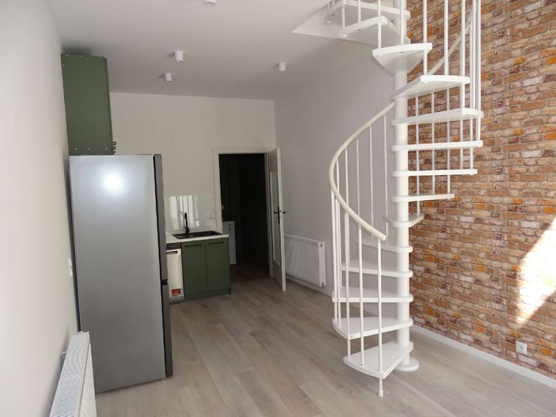 Przedstawiamy Państwu ofertę bez czynszowego, dwupoziomowego mieszkania, które położone jest na parterze i pierwszym piętrze oficyny, w kamienicy, w ścisłym centru Ostrowa Wielkopolskiego, przy ulicy Raszkowskiej. Budynek, w którym znajduje się lokal wybudowany został z cegły, został docieplony styropianem grafitowym o grubości 15 centymetrów i jest po generalnym remoncie. Posiada nową elewację, rynny oraz nowe pokrycie dachu. Lokal ten stanowi odrębną własność z udziałem w gruncie i księgą wieczystą a jego powierzchnia użytkowa wynosi 49,11 m2. Wewnątrz mamy do dyspozycji na parterze pokój dzienny z aneksem kuchennym a piętro obejmuje dwie sypialnie, łazienkę i korytarz. Obie te kondygnacje łączy klatka schodowa ze schodami spiralnymi.