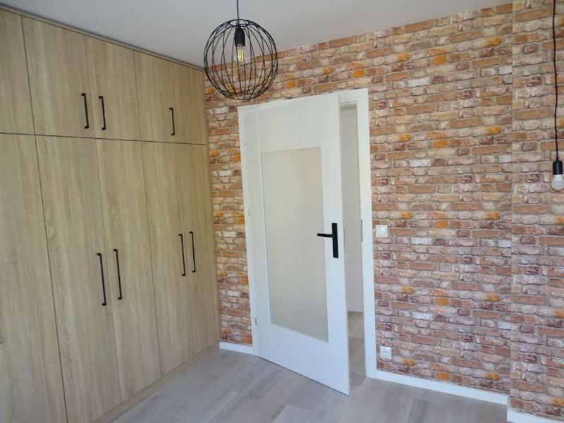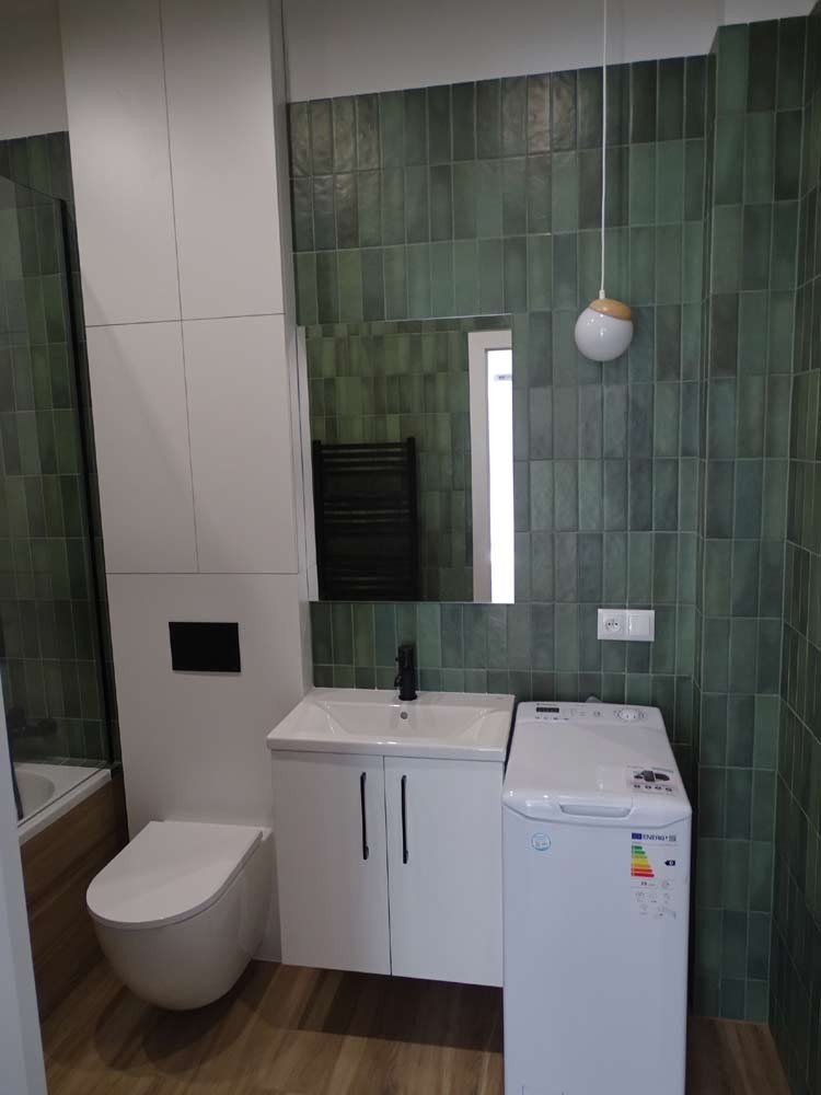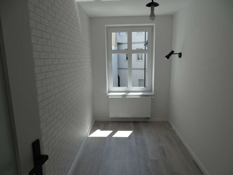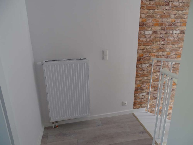 Lokal jest po kapitalnym remoncie, został nowocześnie i przytulnie urządzony. Zamontowane są okna z profili PCV 3 szybowe (na parterze z roletami zewnętrznymi aluminiowymi). Wymienione zostały instalacje elektryczne i wodno - kanalizacyjne, wykonano nowe wylewki na posadzkach. Ze względów estetycznych i użytkowych podłogi zostały pokryte panelami winylowymi i kaflami ceramicznymi. Zamontowano nowoczesne oświetlenie sufitowe oraz nową stolarkę drzwiową. Kuchnia została umeblowana meblami na wymiar, wyposażono ją w sprzęt gospodarstwa domowego - płytę indukcyjną, piekarnik elektryczny oraz zmywarkę. Podłoga i ściany łazienki zostały wyłożone w płytkach ceramicznych, posiada ona wannę z szybą wannową, geberit, umywalkę wraz z szafką i pralkę automatyczną. Centralne ogrzewanie i wodę ciepłą zasila ciepłociąg miejski, instalacja jest nowa a grzejniki stalowe. Media i ciepło rozliczane są za pomocą indywidualnych liczników. Do lokalu została doprowadzona instalacja internetu światłowodowego. Cena obejmuje zabudowę trwałą - meble kuchenne wraz ze sprzętem agd oraz zabudowaną szafę garderobianą na wymiar znajdującą się w korytarzu.