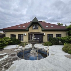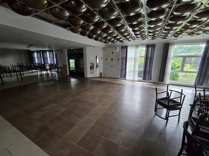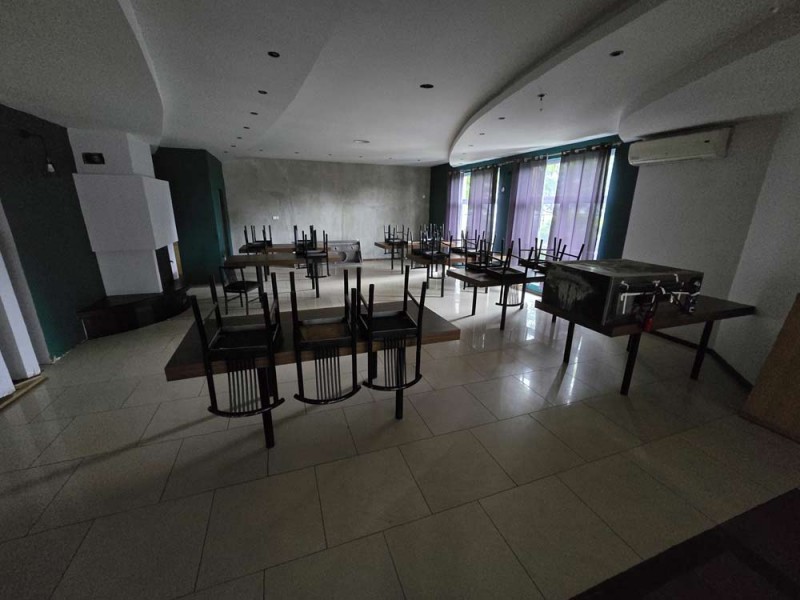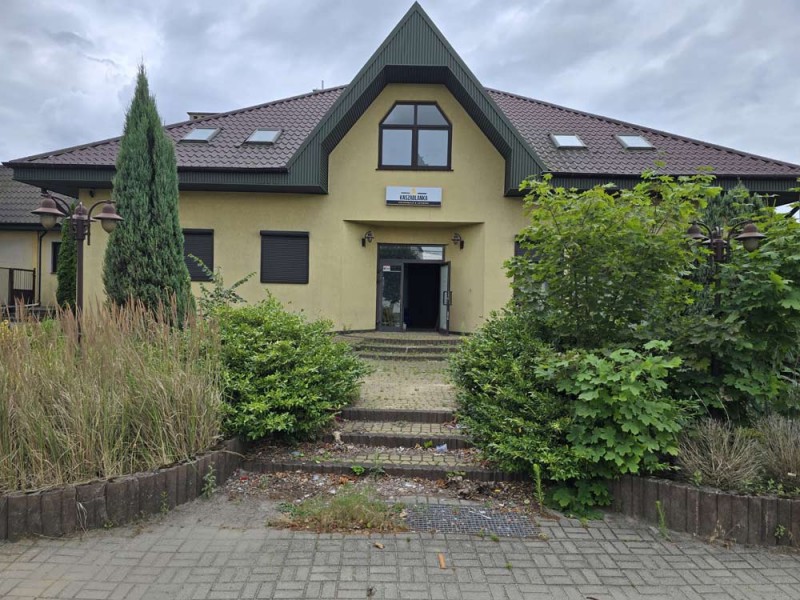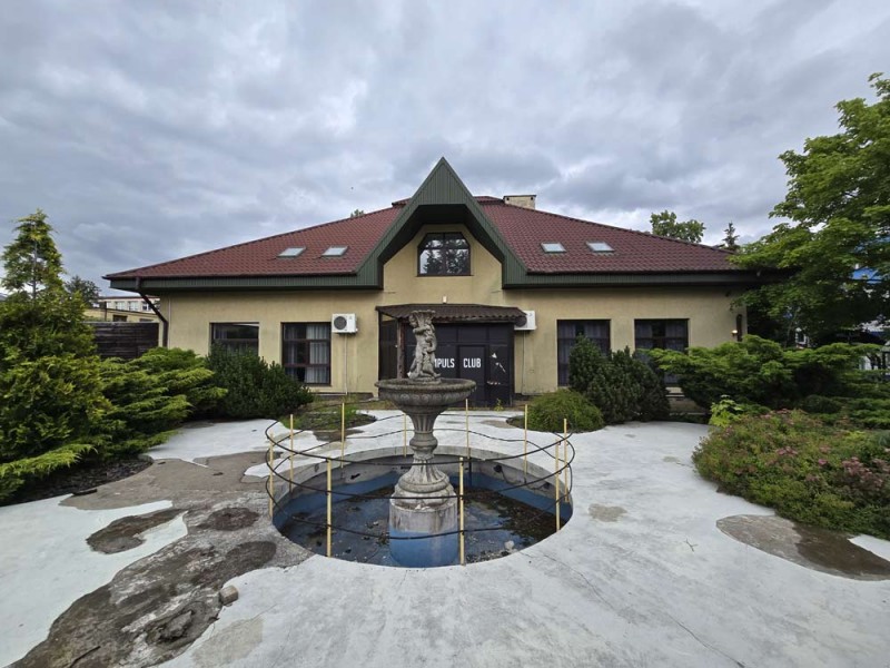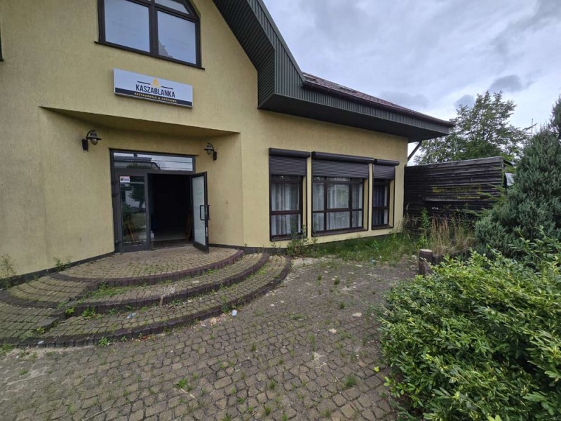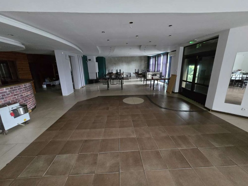 Jest to budynek dwukondygnacyjny - parterowy z poddaszem użytkowym. Wybudowany został w technologii tradycyjnej murowanej. Strop jest ciężki, systemowy typu Teriva a schody wiodące na piętro są żelbetowe. Wielospadowy dach na konstrukcji drewnianej pokryty został blacho - dachówką. Budynek jest ocieplony. Przyziemie posiada powierzchnię 347,60 m2 i tutaj znajduje się lokal gastronomiczny z salą bankietową, zapleczem kuchennym, socjalnym i sanitarnym.