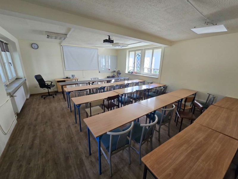 Zamontowana jest stolarka okienna z profili PCV z roletami zewnętrznymi aluminiowymi a na podłogach znajdują się kafle ceramiczne. Zamontowane jest oświetlenie sufitowe a ściany są gipsowane. Zaplecze kuchenne zostało wyposażone w urządzenia służące do przygotowywania posiłków. Wszystkie sanitariaty są wykończone w płytkach ceramicznych. Poddasze zostało zaadaptowane na dwie sale oraz trzy pomieszczenia. Posiada okna dachowe, a na podłogach znajdują się panele. Centralne ogrzewanie zasila kocioł gazowy dwu funkcyjny z zasobnikiem.