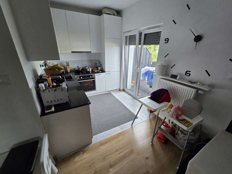 Materiały użyte do wykończenia wnętrza są wysokiej jakości, lokal jest utrzymany w wysokim standardzie. Zamontowane są okna z profili PCV, okna posiadają rolety zewnętrzne aluminiowe z napędem elektrycznym. Ze względów użytkowych i estetycznych podłogi zostały pokryte panelami i wielkoformatowymi kaflami ceramicznymi. Ściany są gipsowane. Kuchnia została umeblowana meblami na wymiar, wyposażono ją w sprzęt gospodarstwa domowego – lodówkę, płytę indukcyjną, piekarnik elektryczny, zmywarkę i pochłaniacz pary. Łazienka jest wykończona w płytkach ceramicznych, posiada prysznic geberit oraz umywalkę wraz z szafką. Centralne ogrzewanie i wodę ciepłą zasila ciepłownia miejska. Cena obejmuje zabudowę trwałą – meble kuchenne wraz ze sprzętem agd a pozostałe umeblowanie i wyposażenie jest w opcji.