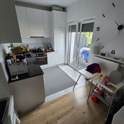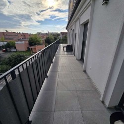Lokal ten stanowi odrębną własność z udziałem w gruncie i księgą wieczystą a jego powierzchnia użytkowa wynosi 43,90 m2. Mieszkanie jest położone na drugim piętrze. Układ pomieszczeń został zaprojektowany w sposób nowoczesny i przestrzenny. Wewnątrz mamy do dyspozycji pokój dzienny z aneksem kuchennym, dwie sypialnie, łazienkę, przedpokój oraz duży balkon.