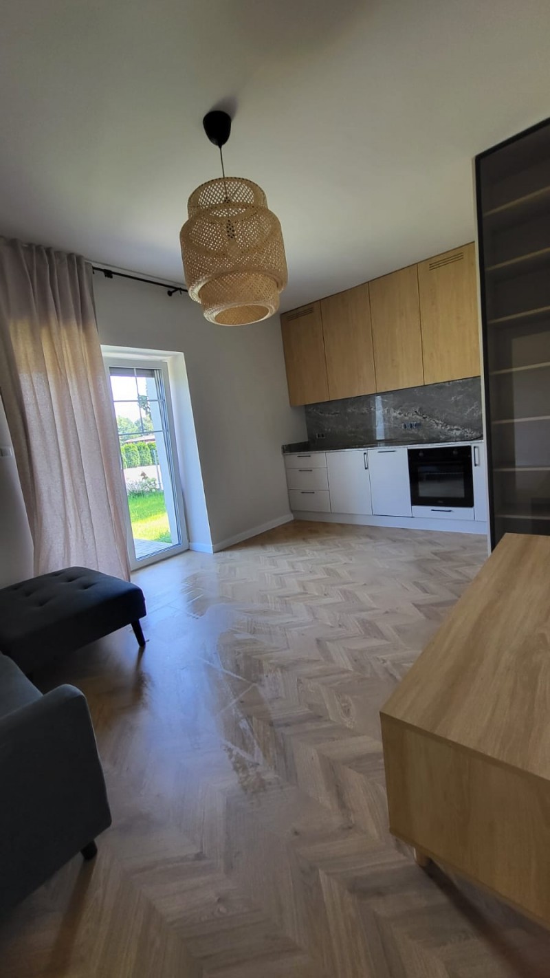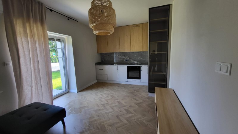 Materiały użyte do wykończenia wnętrza są wysokiej jakości, lokal jest utrzymany w wysokim standardzie. Zamontowane są okna z profili PCV. Ze względów użytkowych i estetycznych podłogi zostały pokryte panelami i wielkoformatowymi kaflami ceramicznymi. Ściany są gipsowane. Kuchnia została umeblowana meblami na wymiar, wyposażono ją w sprzęt gospodarstwa domowego – lodówkę, płytę indukcyjną, piekarnik elektryczny, zmywarkę i pochłaniacz pary. Salon jest klimatyzowany. Łazienka jest wykończona w płytkach ceramicznych, posiada prysznic geberit, umywalkę wraz z szafką oraz pralkę automatyczną. Centralne ogrzewanie i wodę ciepłą kocioł gazowy dwu funkcyjny, grzejniki są stalowe. Cena obejmuje zabudowę trwałą – meble kuchenne wraz ze sprzętem agd oraz pozostałe umeblowanie i wyposażenie.