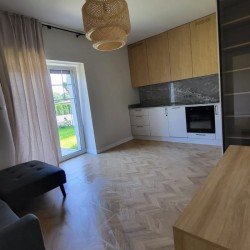 Lokal ten stanowi odrębną własność z udziałem w gruncie i księgą wieczystą a jego powierzchnia użytkowa wynosi 43,32 m2. Mieszkanie jest położone na parterze z tarasem. Układ pomieszczeń został zaprojektowany w sposób nowoczesny i przestrzenny. Wewnątrz mamy do dyspozycji pokój dzienny z aneksem kuchennym, 2 sypialnie, łazienkę oraz korytarz.
