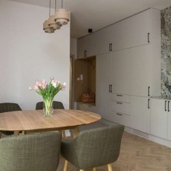 Lokal ten stanowi odrębną własność z udziałem w gruncie i księgą wieczystą a jego powierzchnia użytkowa wynosi 53,20 m2. Mieszkanie jest położone na pierwszym piętrze. Układ pomieszczeń został zaprojektowany w sposób nowoczesny i przestrzenny. Wewnątrz mamy do dyspozycji pokój dzienny z aneksem kuchennym, dwie sypialnie, łazienkę, przedpokój oraz duży taras o powierzchni 98,83 m2.