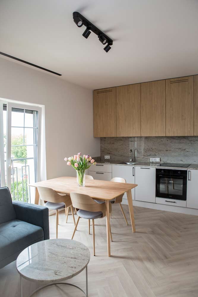 Lokal ten stanowi odrębną własność z udziałem w gruncie i księgą wieczystą a jego powierzchnia użytkowa wynosi 42,15 m2. Mieszkanie jest położone na pierwszym piętrze. Układ pomieszczeń został zaprojektowany w sposób nowoczesny i przestrzenny. Wewnątrz mamy do dyspozycji pokój dzienny z aneksem kuchennym, dwie sypialnie, łazienkę, przedpokój oraz balkon o pow. 6,47 m2.
