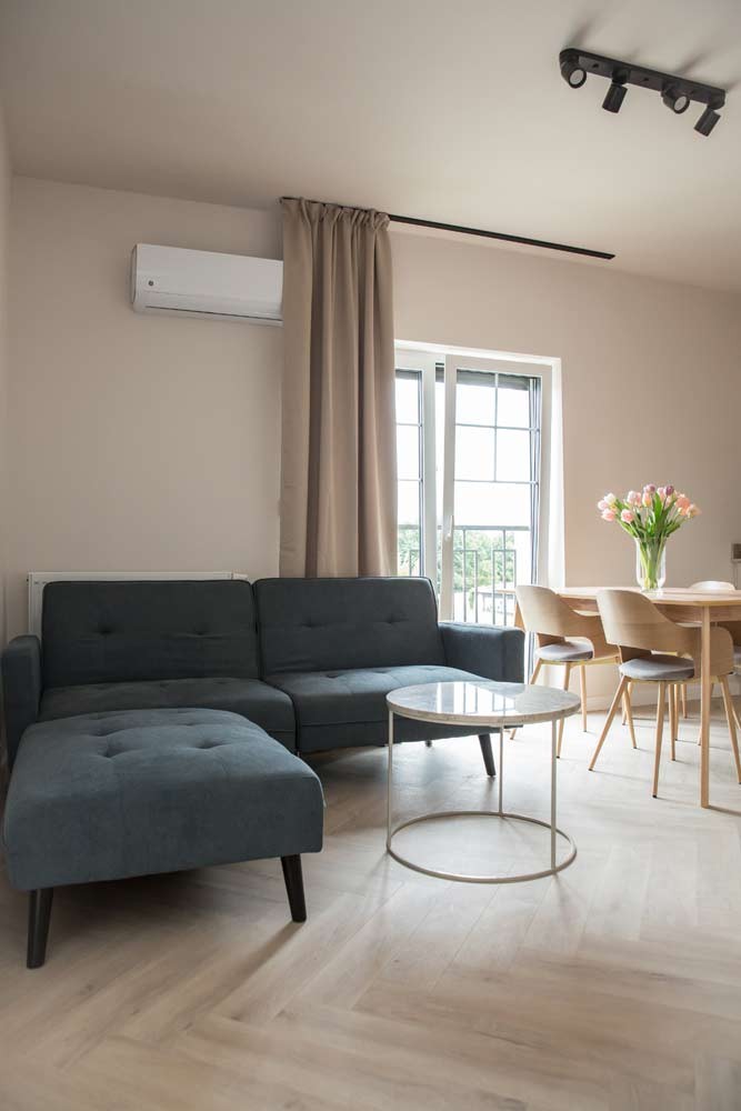 Materiały użyte do wykończenia wnętrza są wysokiej jakości, lokal jest utrzymany w wysokim standardzie. Zamontowane są okna z profili PCV. Ze względów użytkowych i estetycznych podłogi zostały pokryte panelami i wielkoformatowymi kaflami ceramicznymi. Ściany są gipsowane. Kuchnia została umeblowana meblami na wymiar, wyposażono ją w sprzęt gospodarstwa domowego – lodówkę, płytę indukcyjną, piekarnik elektryczny, zmywarkę i pochłaniacz pary. Salon jest klimatyzowany. Łazienka jest wykończona w płytkach ceramicznych, posiada prysznic geberit, umywalkę wraz z szafką oraz pralkę automatyczną. Centralne ogrzewanie i wodę ciepłą kocioł gazowy dwu funkcyjny, grzejniki są stalowe. Cena obejmuje zabudowę trwałą – meble kuchenne wraz ze sprzętem agd oraz pozostałe umeblowanie i wyposażenie.